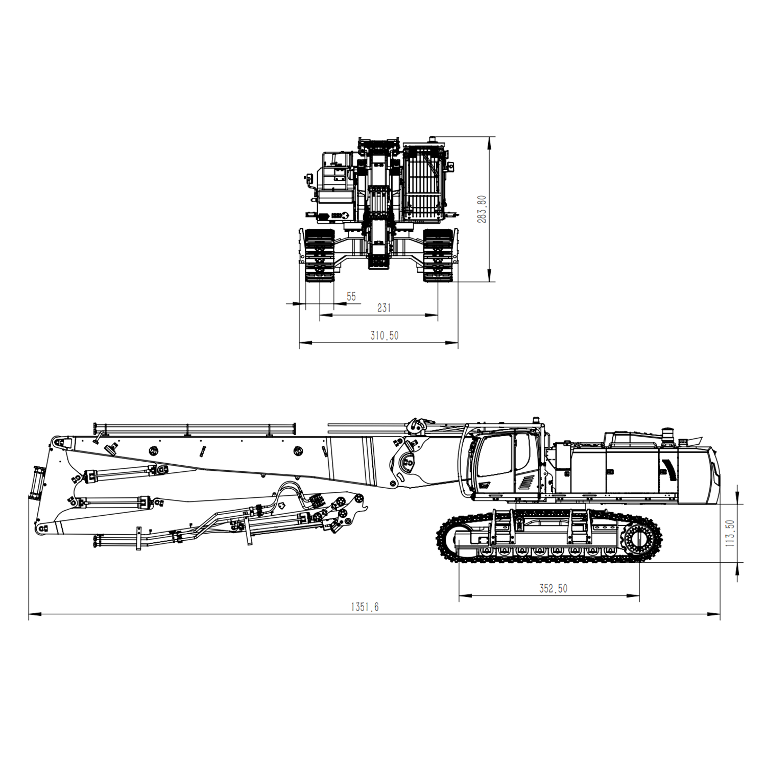 - Unterstützt austauschbare Armtypen und ermöglicht so durch Ändern der Armkonfiguration einen einfachen Wechsel zwischen Abbruch- und Aushubmodus.