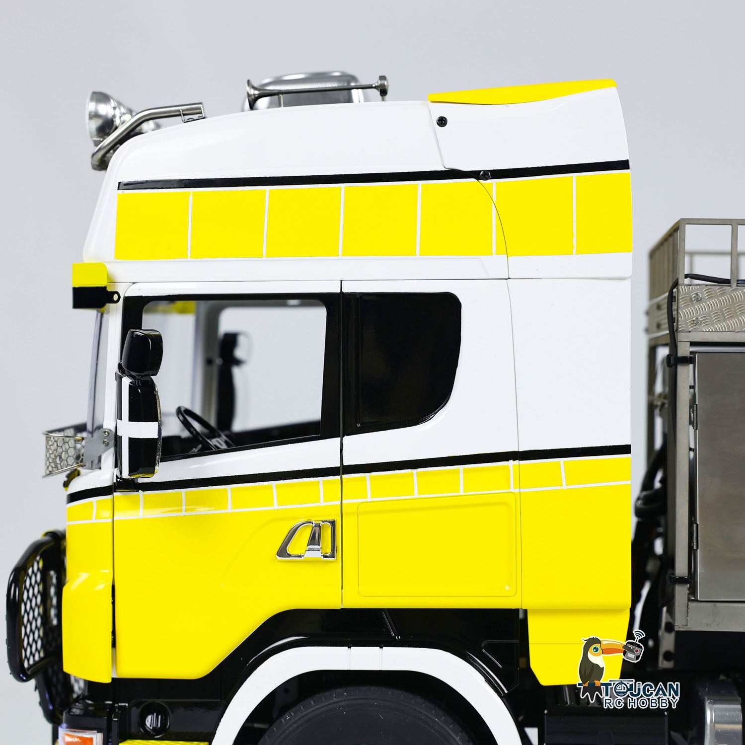 6. Detaillierte Kunststoffkarosserie: Der LKW verfügt über eine detaillierte Kunststoffkarosserie, die das Aussehen eines echten Sattelschleppers imitiert. Die Türen des Fahrzeugs können für mehr Realismus und Individualisierung geöffnet werden.