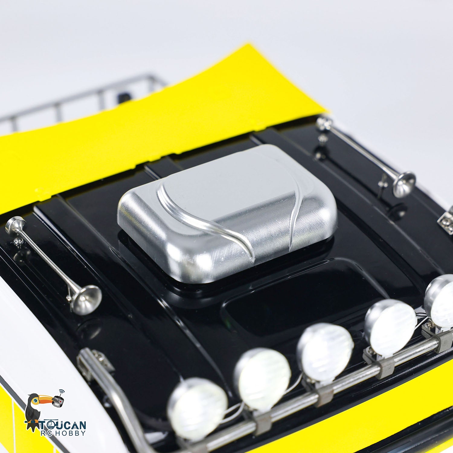 7. Dekorative, auf dem Dach montierte Klimaanlage: Eine dekorative Klimaanlage ist auf dem Dach montiert und verbessert die optische Ästhetik des RC-Sattelschleppers.