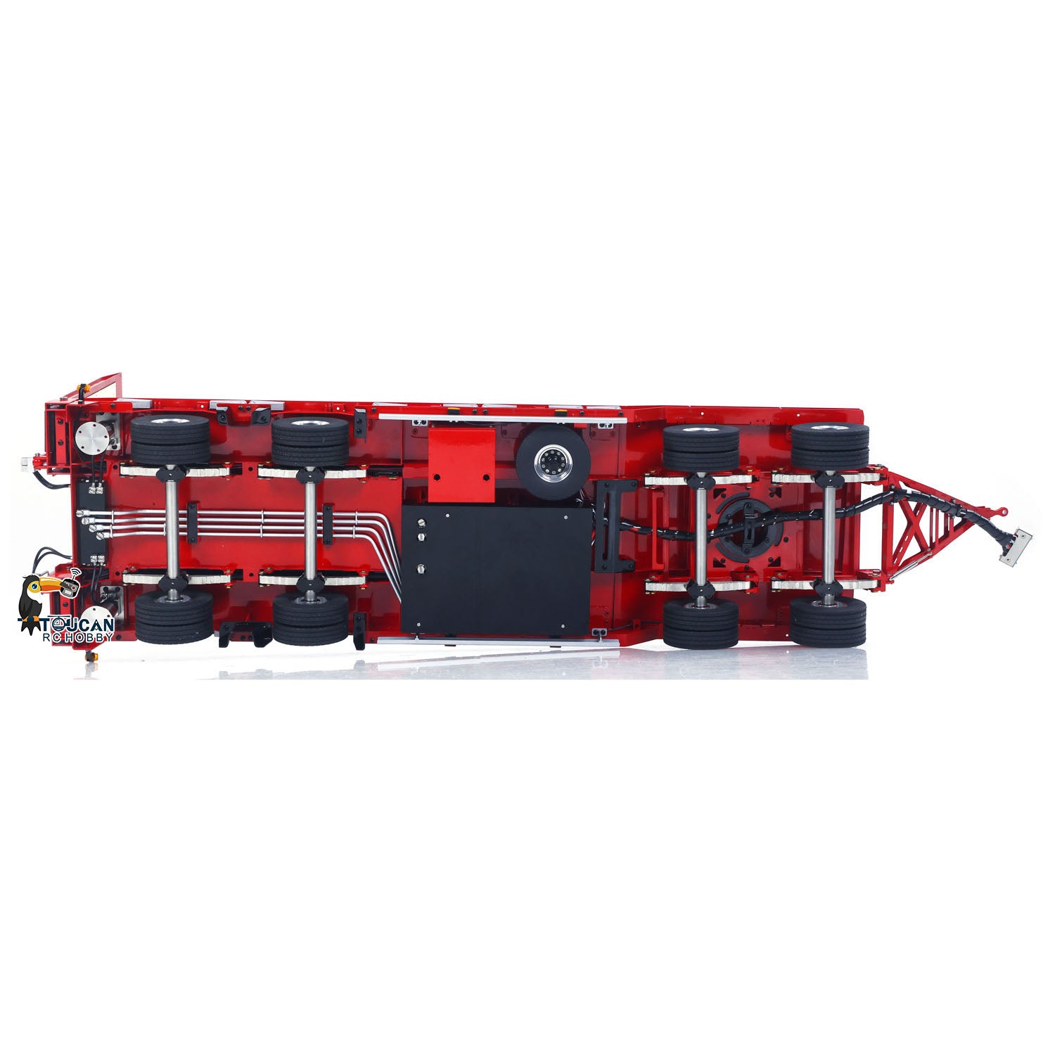 2. 4-axle unpowered axle with CNC precision hubs and high-quality rubber tires; axle suspension with simulated leaf spring suspension.