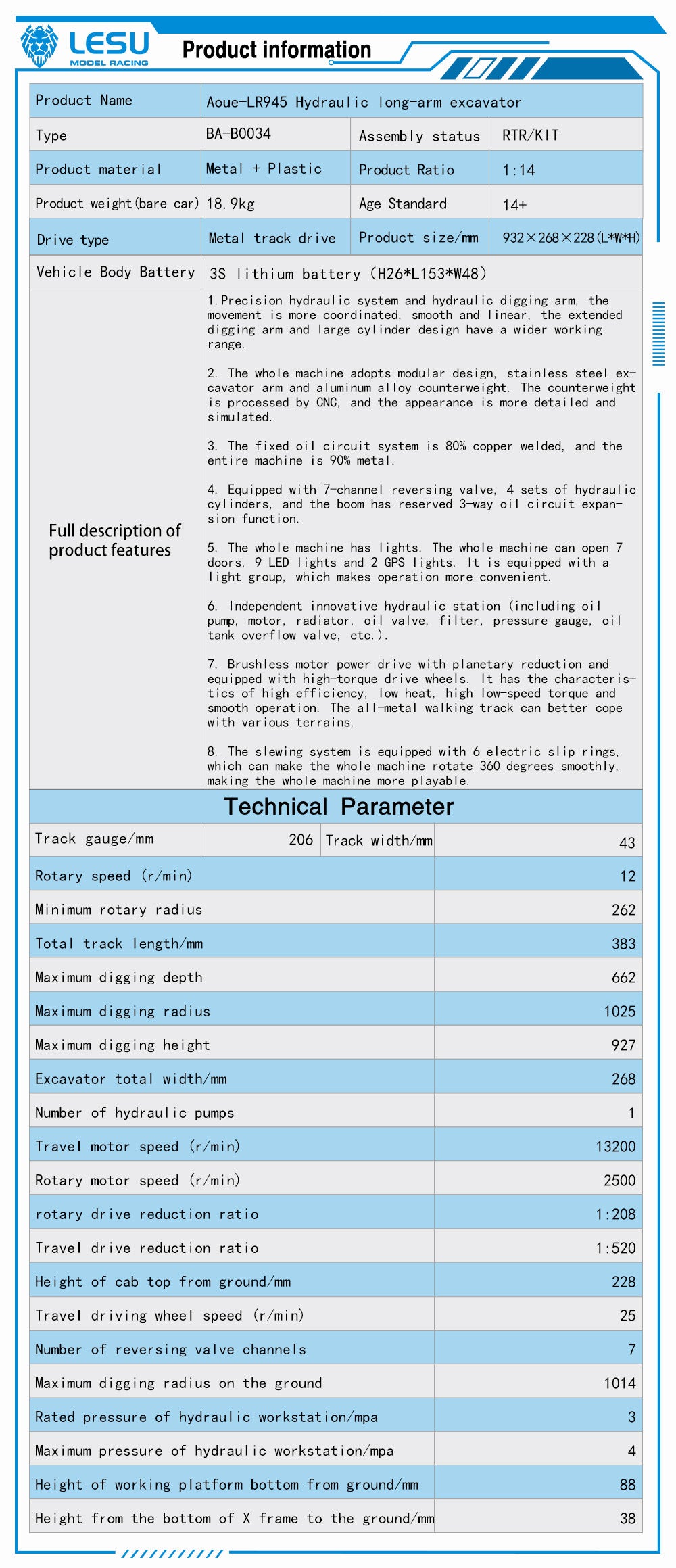 2. Whole-machine modular design; stainless steel excavator arm and aluminum alloy counterweight; counterweight processed by CNC for more detailed and realistic appearance.?
