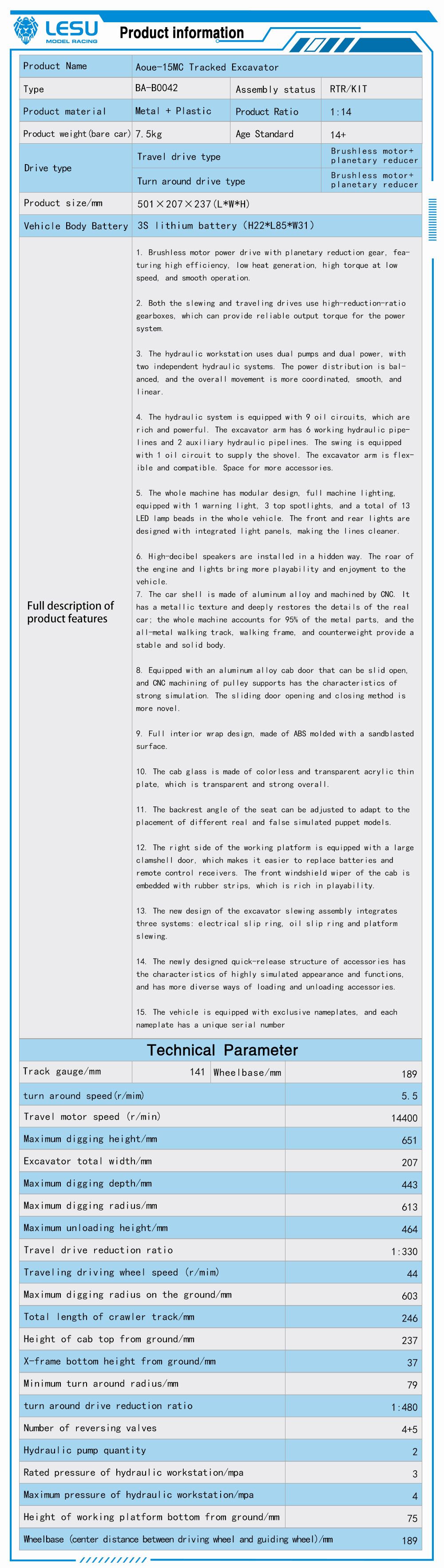 2.The slewing system uses a brushed motor with a high-reduction-ratio reducer, providing reliable reliable output torque for the slewing system.