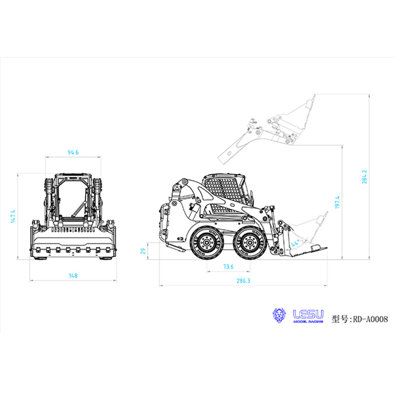 LESU 1/14 RC Metall Hydraulische Aoue LT5H Lackiert Montiert PNP Rädern Kompaktlader A0008