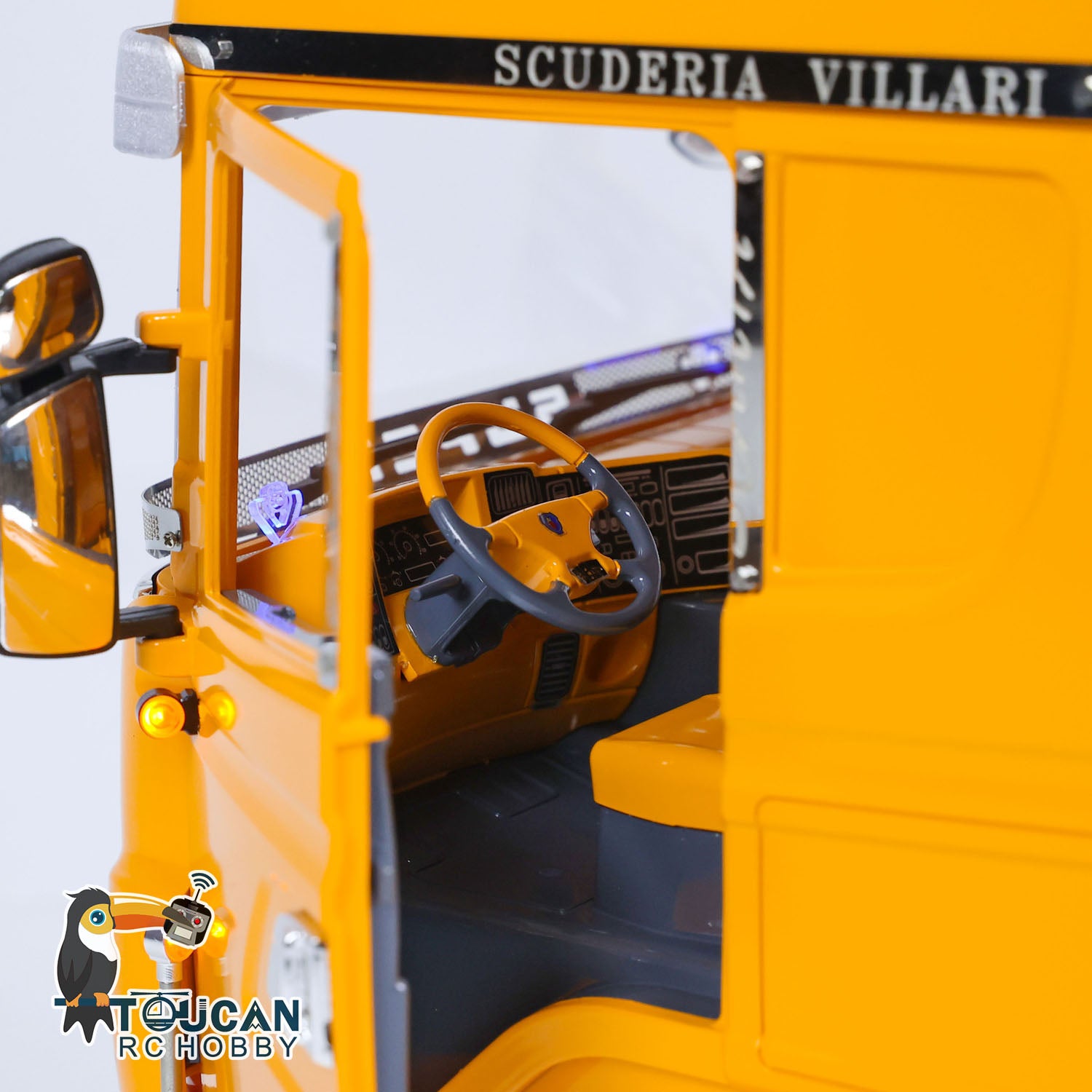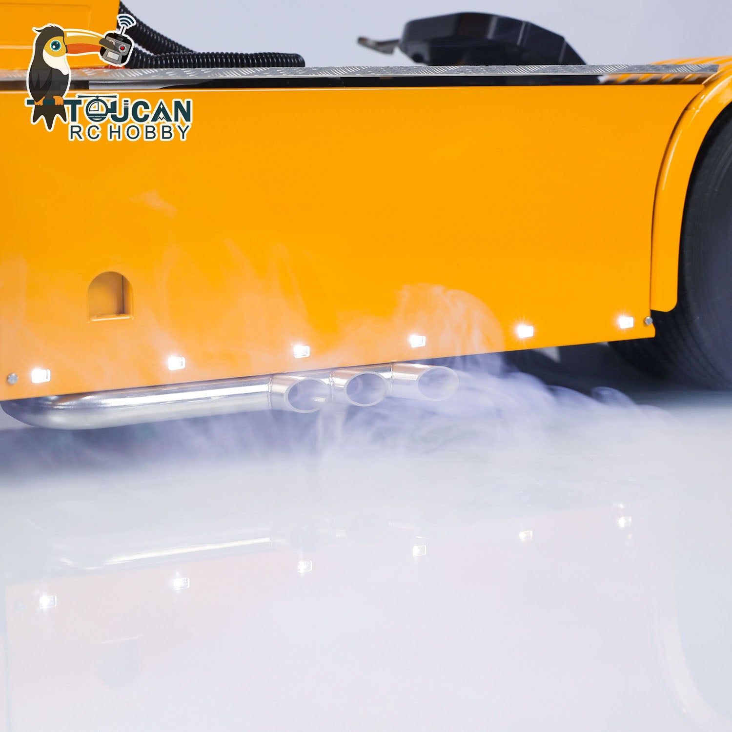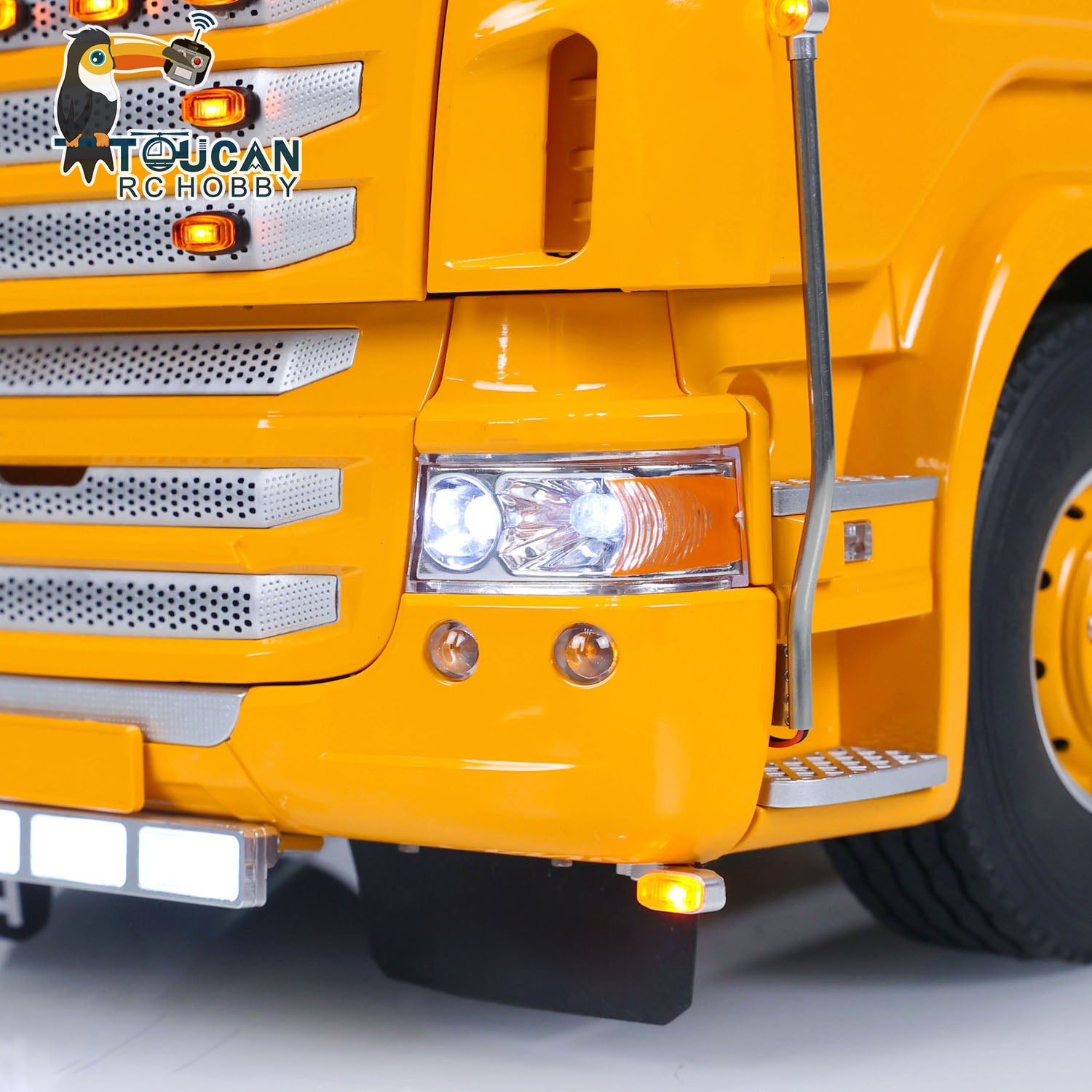 7. Beleuchtungssystem: Der RC-Sattelschlepper verfügt über ein ausgeklügeltes Beleuchtungssystem mit Scheinwerfern, Rücklichtern und Blinklichtern. Dies verbessert nicht nur sein Aussehen, sondern auch die Sichtbarkeit bei schlechten Lichtverhältnissen.