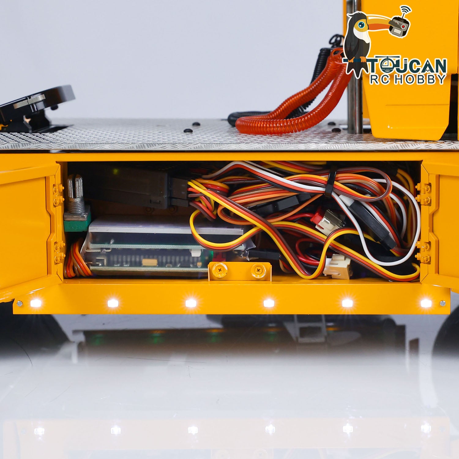 1. Metallchassis, Achsen, Antriebswellen und Naben: Das RC-Sattelzugmodell verfügt über ein robustes LESU-Metallchassis, das Haltbarkeit und Realismus verbessert. Alle wesentlichen Komponenten wie Achsen, Antriebswellen und Radnaben sind aus hochwertigem Metall gefertigt, um zusätzliche Festigkeit zu gewährleisten.