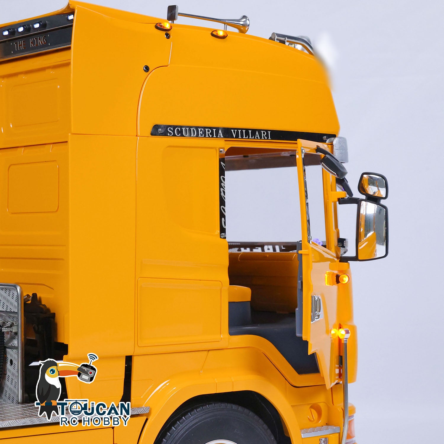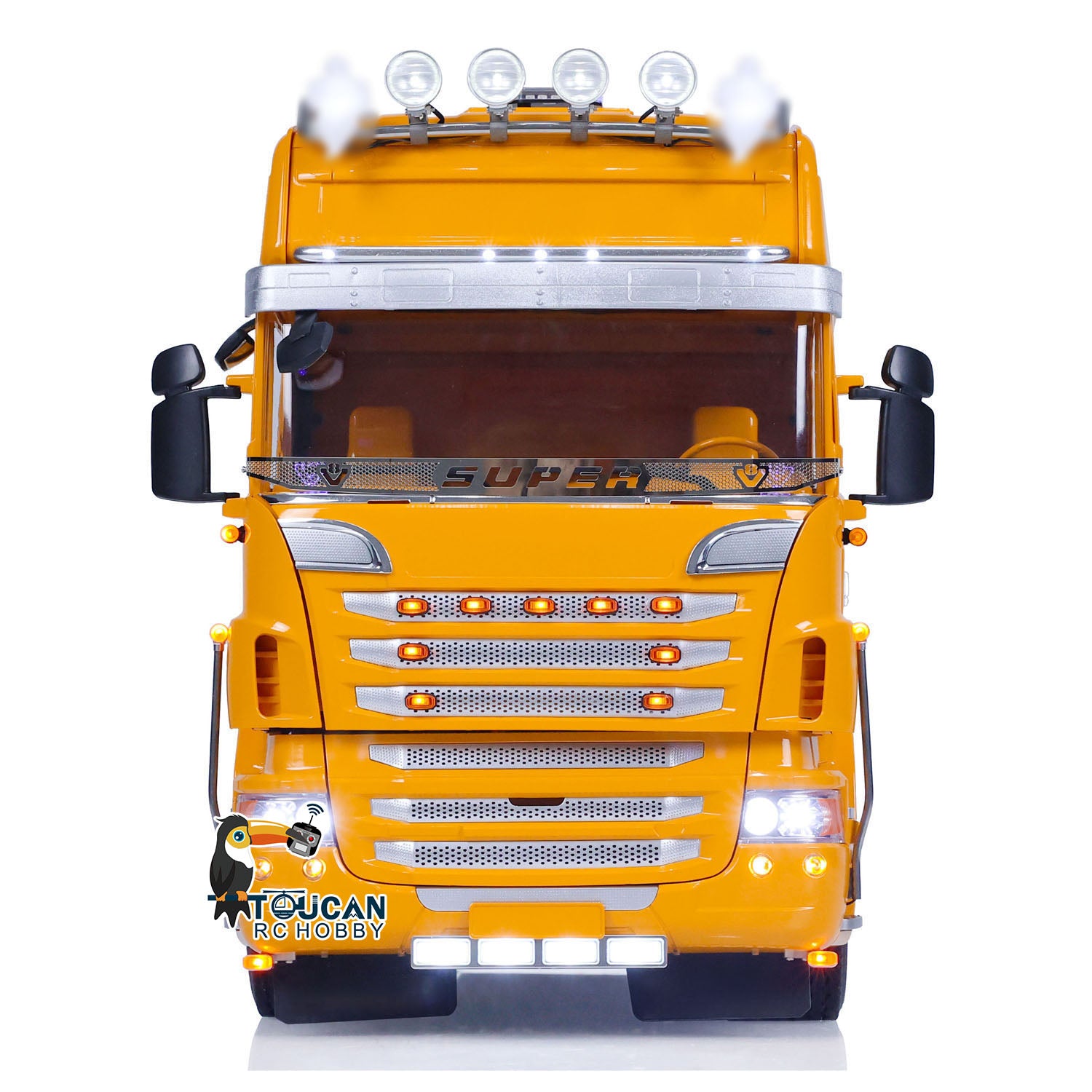 7. Beleuchtungssystem: Der RC-Sattelschlepper verfügt über ein ausgeklügeltes Beleuchtungssystem mit Scheinwerfern, Rücklichtern und Blinklichtern. Dies verbessert nicht nur das Erscheinungsbild, sondern auch die Sichtbarkeit bei schlechten Lichtverhältnissen.