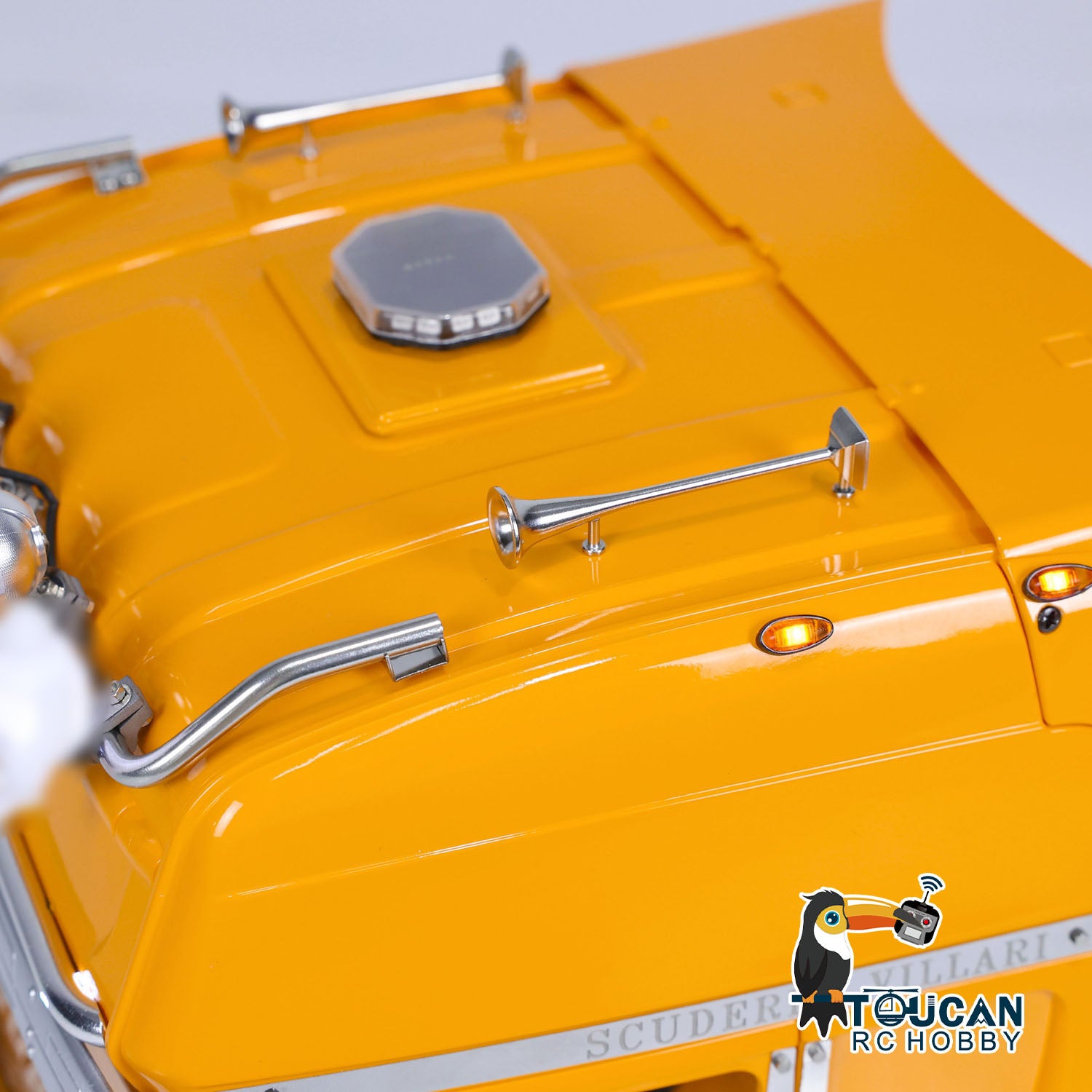 6. Individuelle Beleuchtung und Aufkleber: Um dem Truck einen Hauch von Persönlichkeit und Stil zu verleihen, ist er mit verschiedenen Beleuchtungsfunktionen und Aufklebern ausgestattet. Diese Details lassen das Modell hervorstechen und realistischer aussehen.