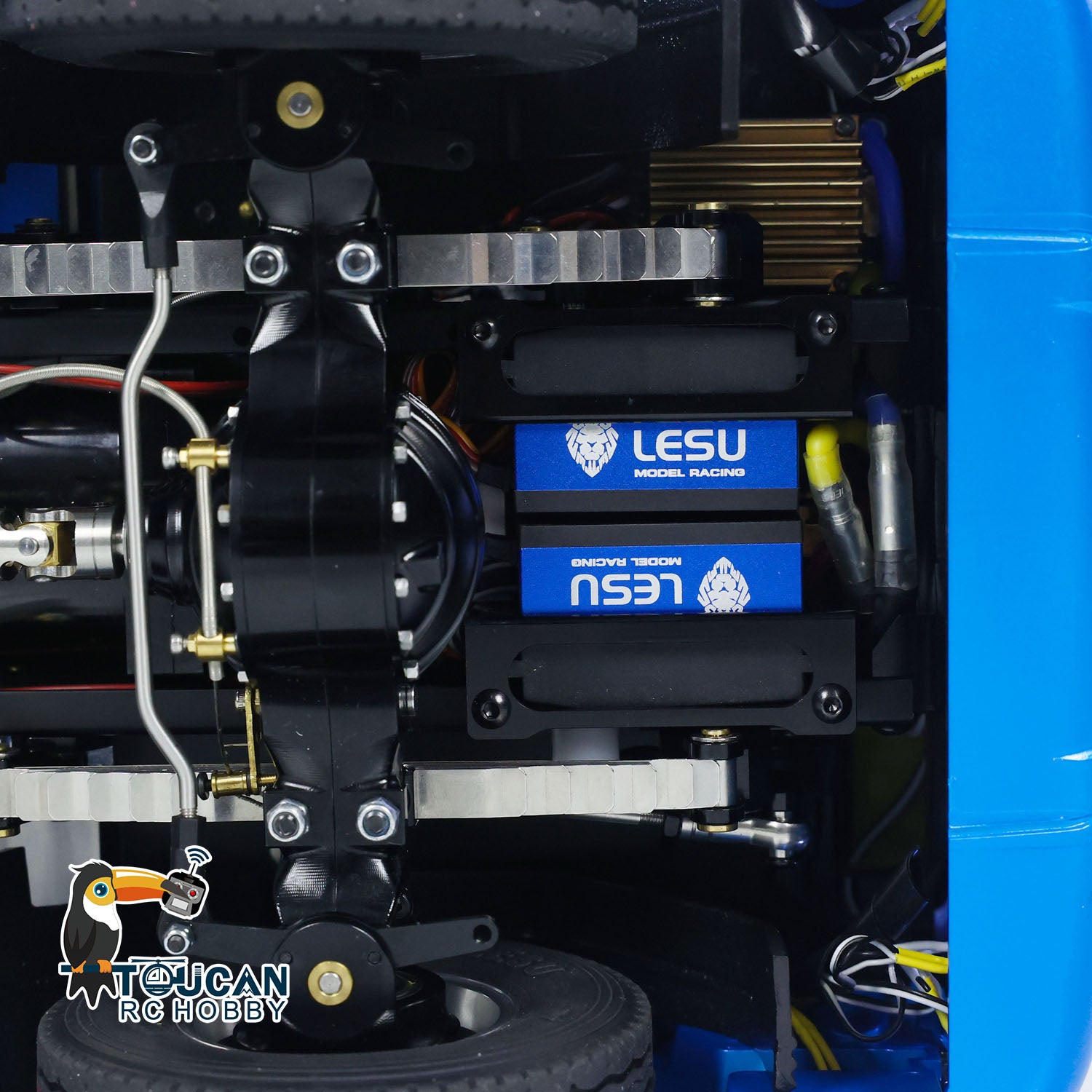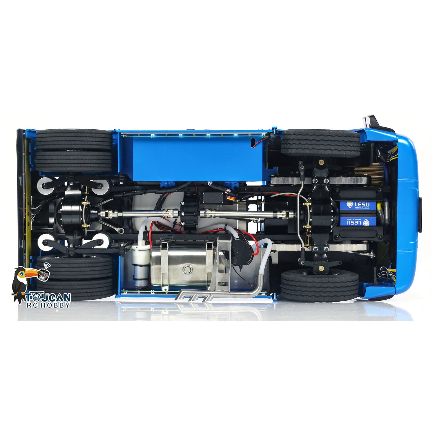 1. Metallchassis, Achsen, Antriebswellen und Naben: Das RC-Sattelzugmodell verfügt über ein robustes LESU-Metallchassis, das Haltbarkeit und Realismus verbessert. Alle wesentlichen Komponenten wie Achsen, Antriebswellen und Radnaben sind aus hochwertigem Metall gefertigt, um zusätzliche Festigkeit zu gewährleisten.