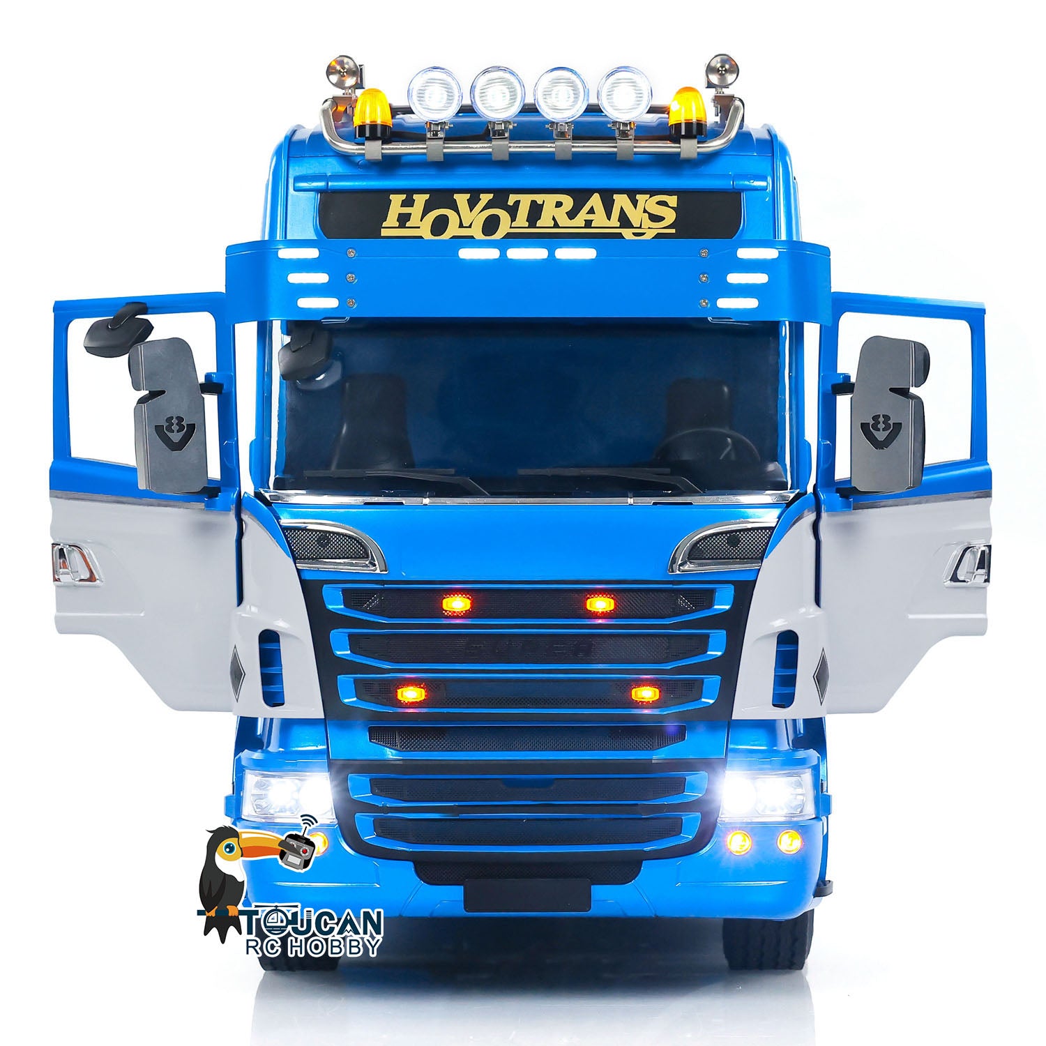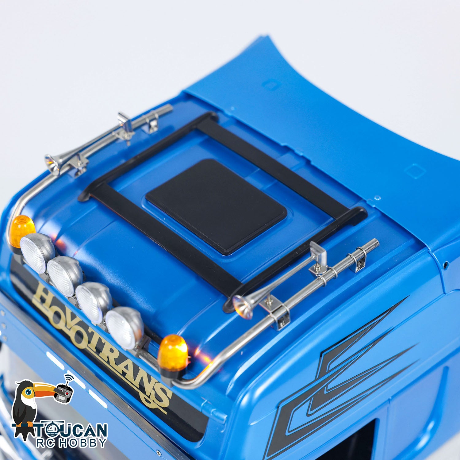 7. Beleuchtungssystem: Der RC-Sattelschlepper verfügt über ein ausgeklügeltes Beleuchtungssystem mit Scheinwerfern, Rücklichtern und Blinklichtern. Dies verbessert nicht nur sein Aussehen, sondern auch die Sichtbarkeit bei schlechten Lichtverhältnissen.
