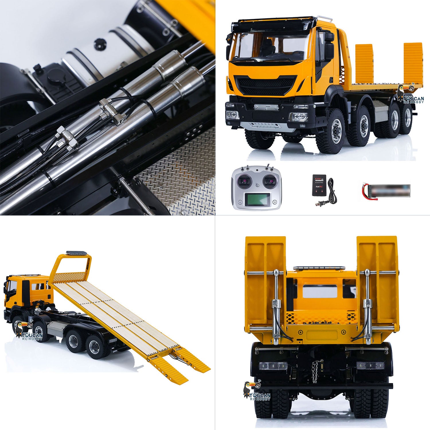 1/14 8X8 RC Hydraulic Wrecker Truck 2Speed Remote Control Road Rescue Vehicle CNC Axle Differential Locks Light System Battery