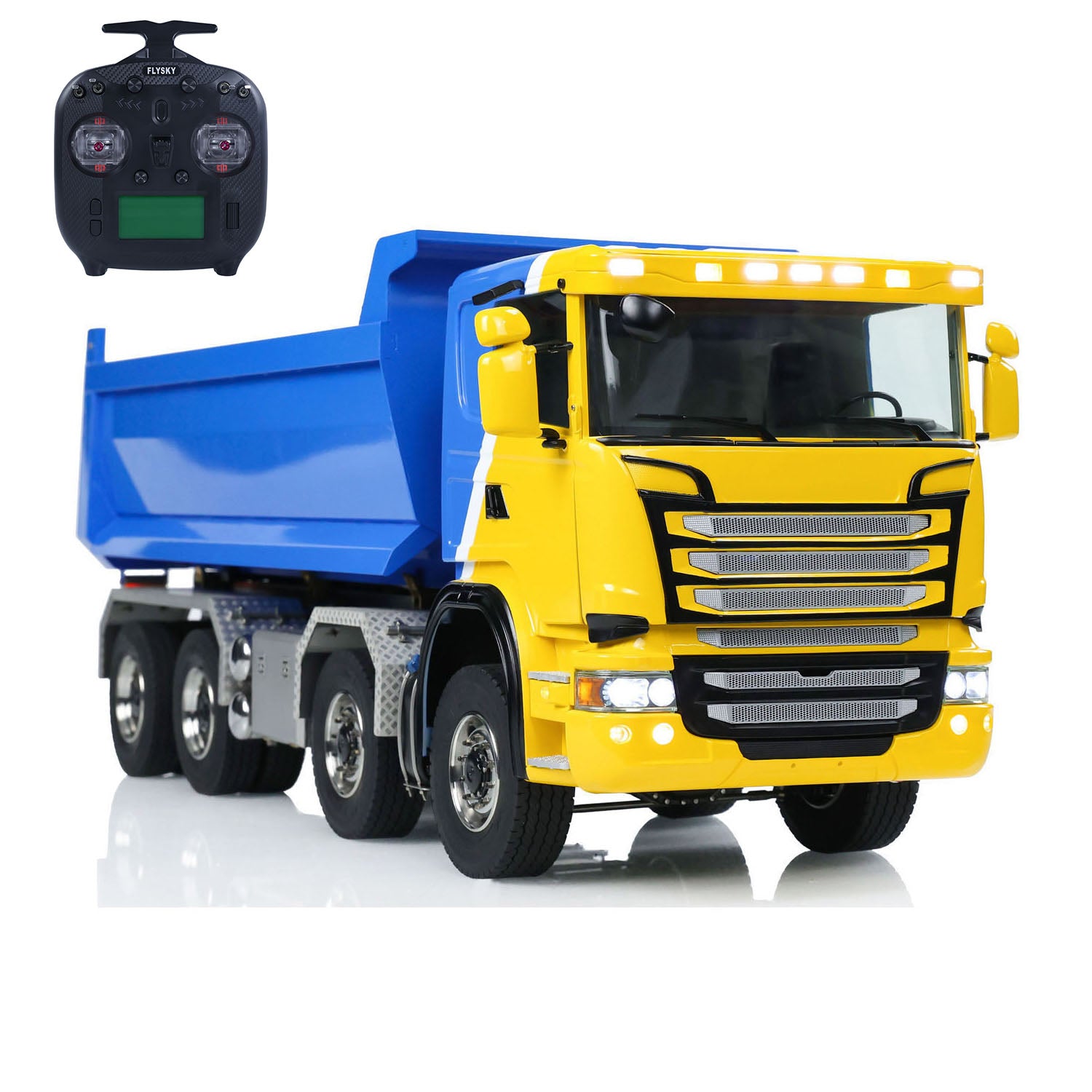 Metal 1/14 Hydraulic RC Dump Truck 8x8 Full Tipper Differential Lock Axles 3Speed Gearbox Wheel Hub Reduction Flysky Radio Construction Vehicle
