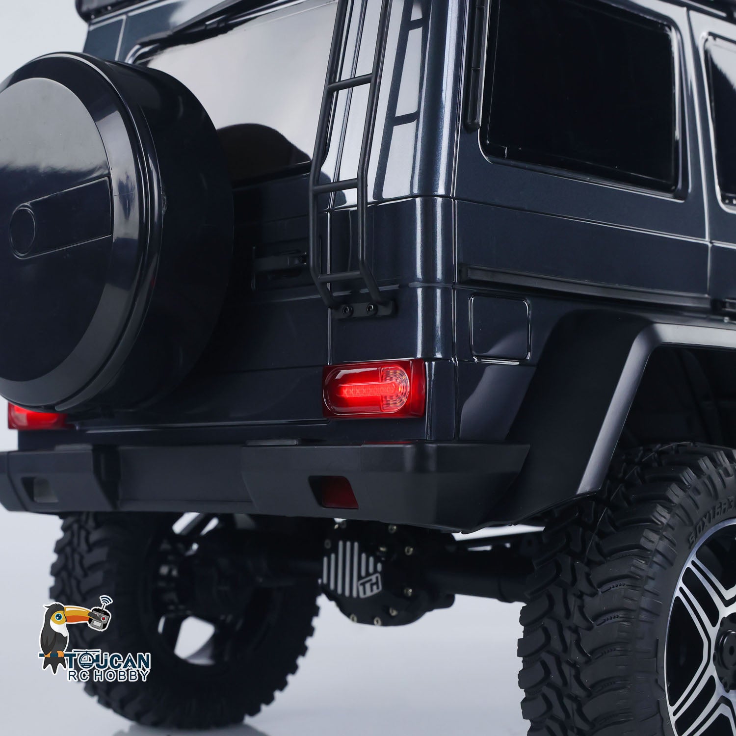 2, The portal axle design is adopted for the vehicle axles, which increases the ground clearance and improves passability. This allows the RC car to better traverse obstacles and rough terrains when simulating climbing in complex environments. Meanwhile, the axles feature high-performance nylon axle housings, CNC-machined axle covers, and metal gear sets. Additionally, independently controlled front and rear differential locks are equipped to meet the high-intensity demands of off-road driving.