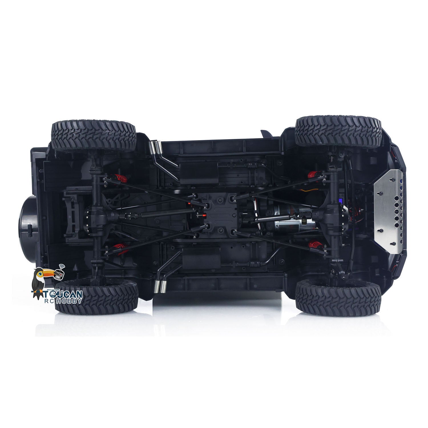3, A dual-speed high-strength metal gear transmission is configured, paired with a high-power 775 brushed motor and a splash-proof 880 electronic speed controller (ESC). The entire vehicle uses metal drive shafts to ensure both performance and durability while delivering robust power.