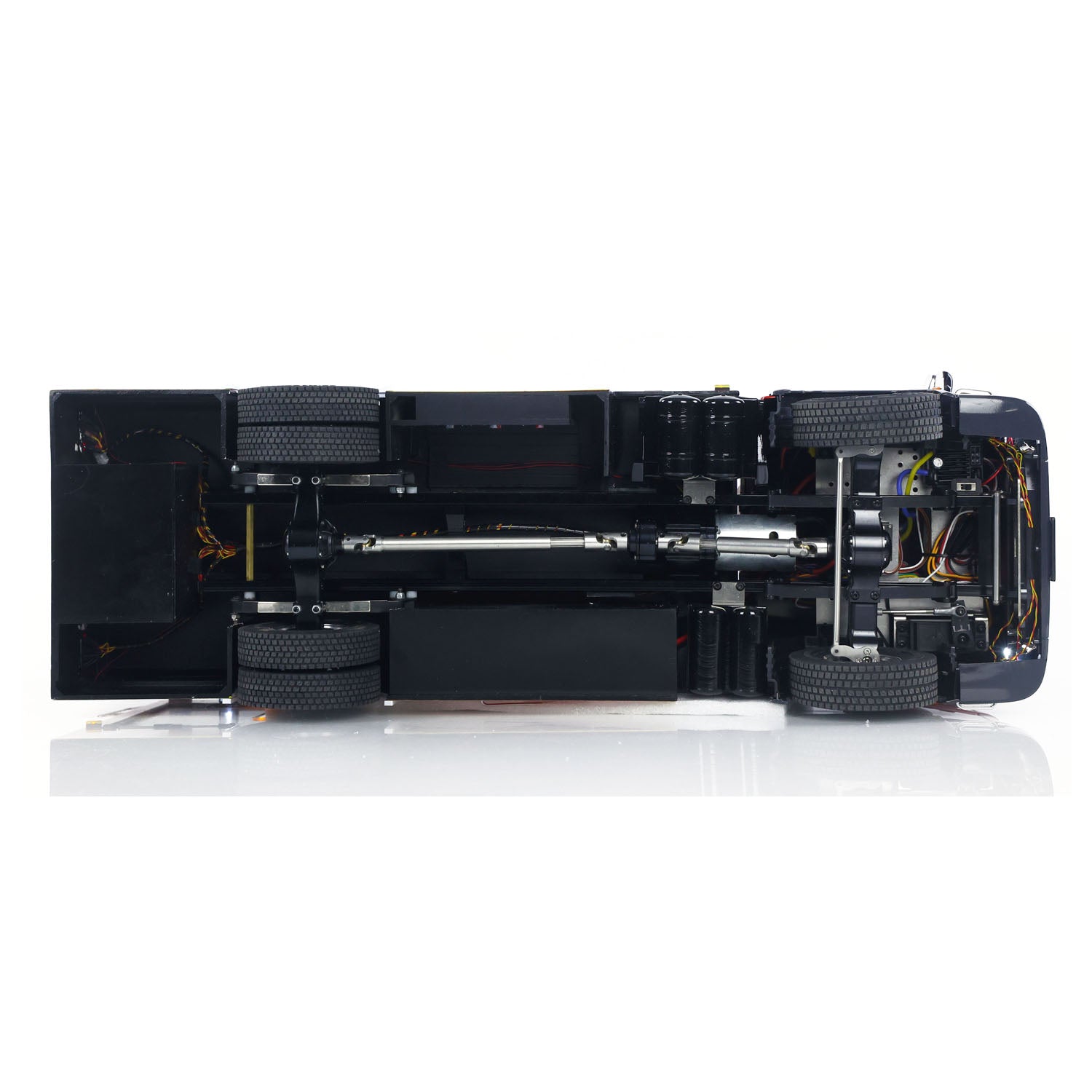 With a metal front axle, metal rear axle, metal chassis rail, metal suspension, metal drive shaft, and metal gearbox, this metal chassis provides enhanced stability and durability. It ensures the longevity and robustness of the truck, making it suitable for various challenging terrains.