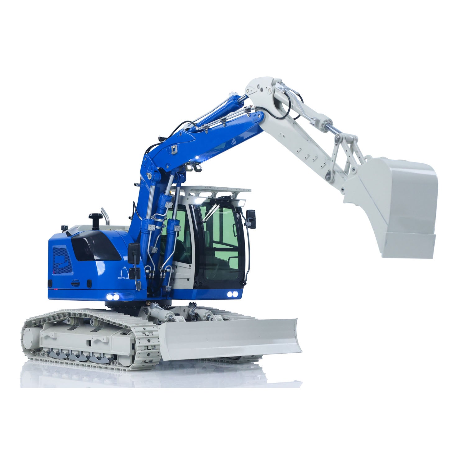 11. CNC Stainless Steel Arms: The excavator's arm is made of stainless steel plates welded with steel sleeves, which not only enhances the overall texture and realism but also provides good strength. Multiple holes are pre-drilled allowing operators to easily modify and upgrade it themselves.
