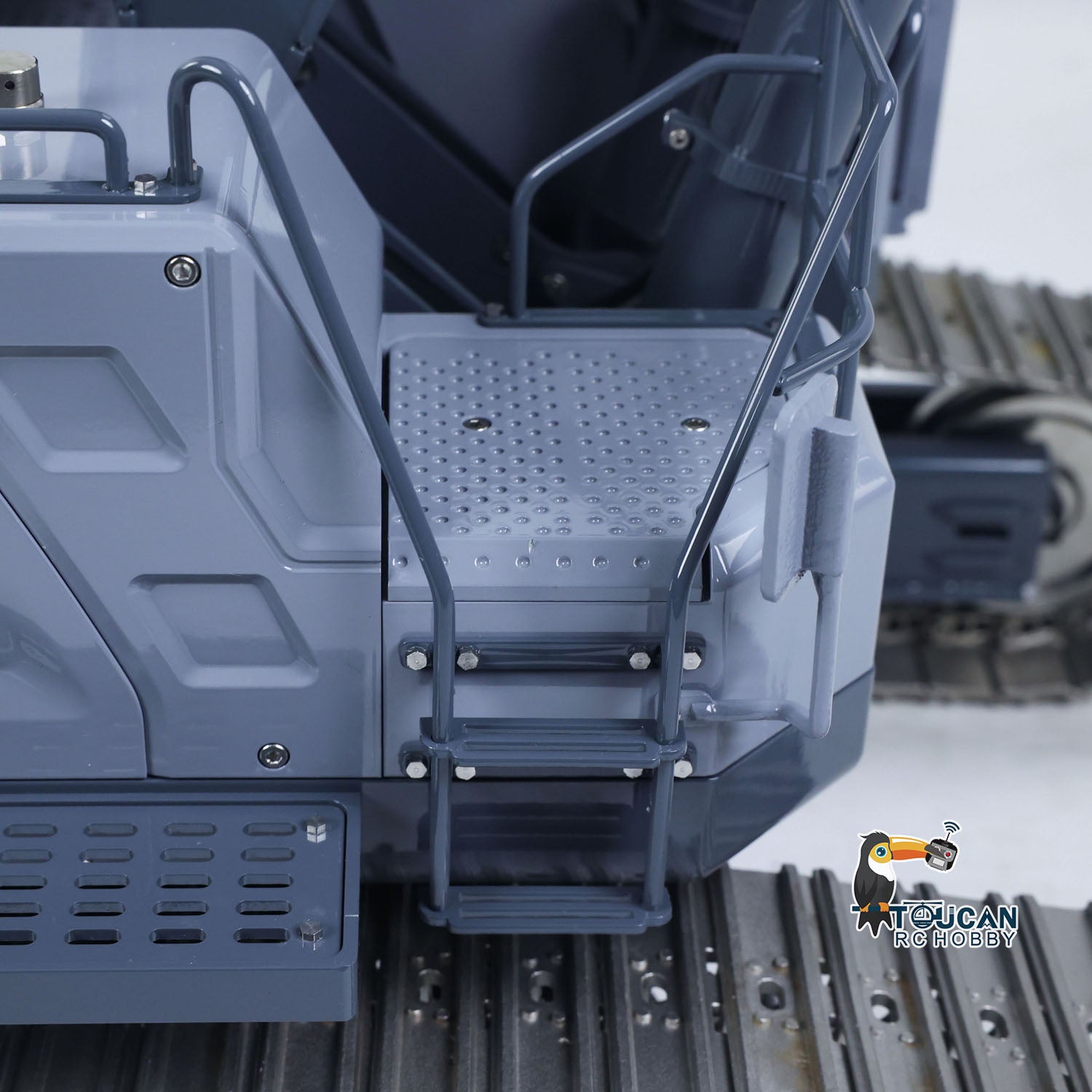 1. Net weight of this 1/12 rc excavator is about 55KG. The entire machine is made of 95% metal, including stainless steel tracks, load-bearing wheels, drive wheels, idler wheels, etc. Processes such as sheet metal, CNC, and 3D printing are used.