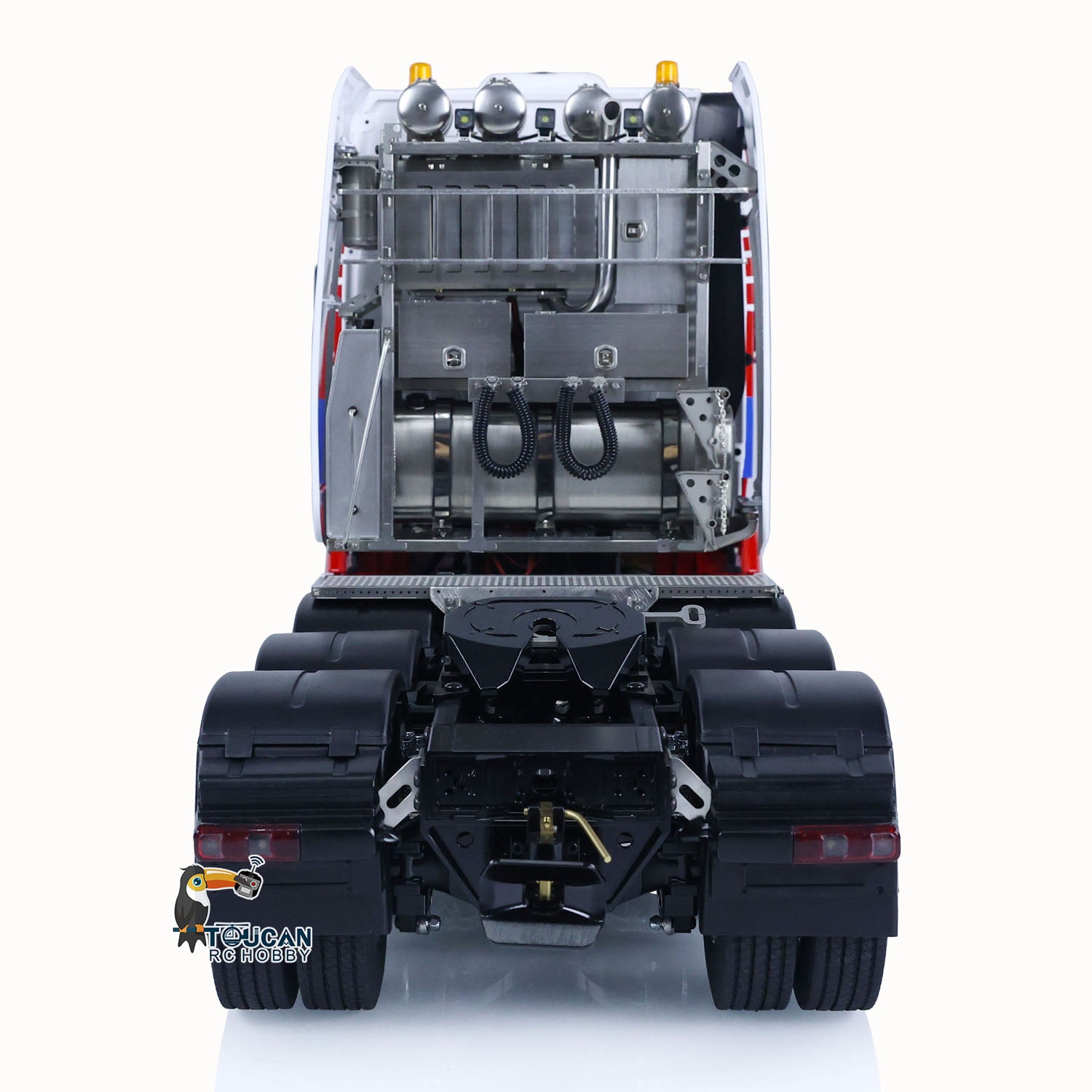 5. Feux d'avertissement montés sur le dessus : le camion tracteur est doté de feux d'avertissement montés sur le dessus du toit de la cabine, ce qui lui donne une apparence cool et accrocheuse. Ces lumières ajoutent au réalisme général et au plaisir de conduire le modèle de camion.