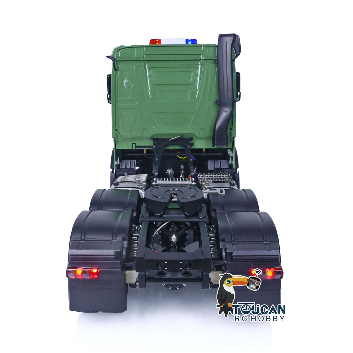 4. Feux d'avertissement montés sur le dessus : le toit de la cabine du camion tracteur est orné de feux d'avertissement supplémentaires, ce qui rend le véhicule encore plus cool et accrocheur. Ces lumières ajoutent à l'authenticité et au côté cool du camion.