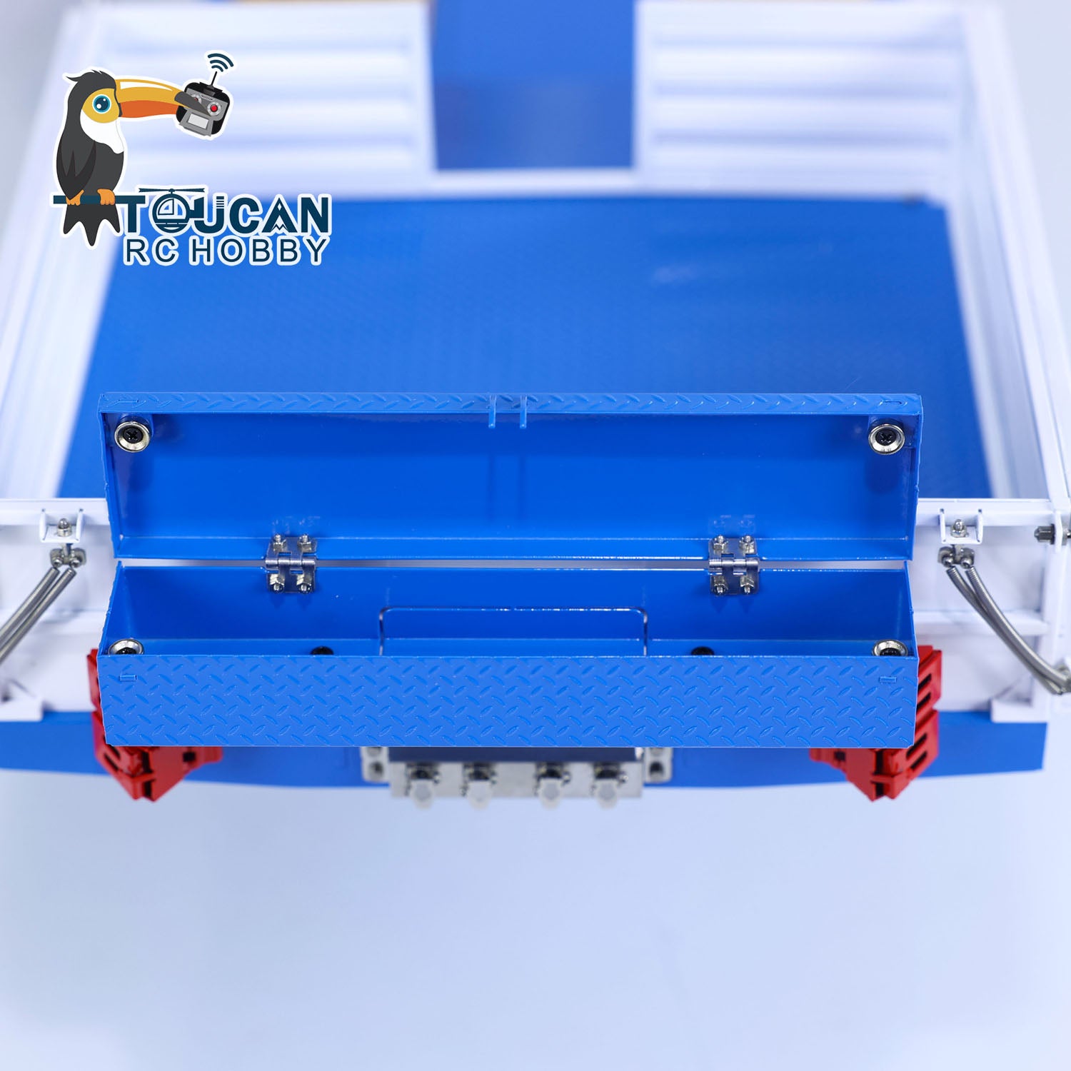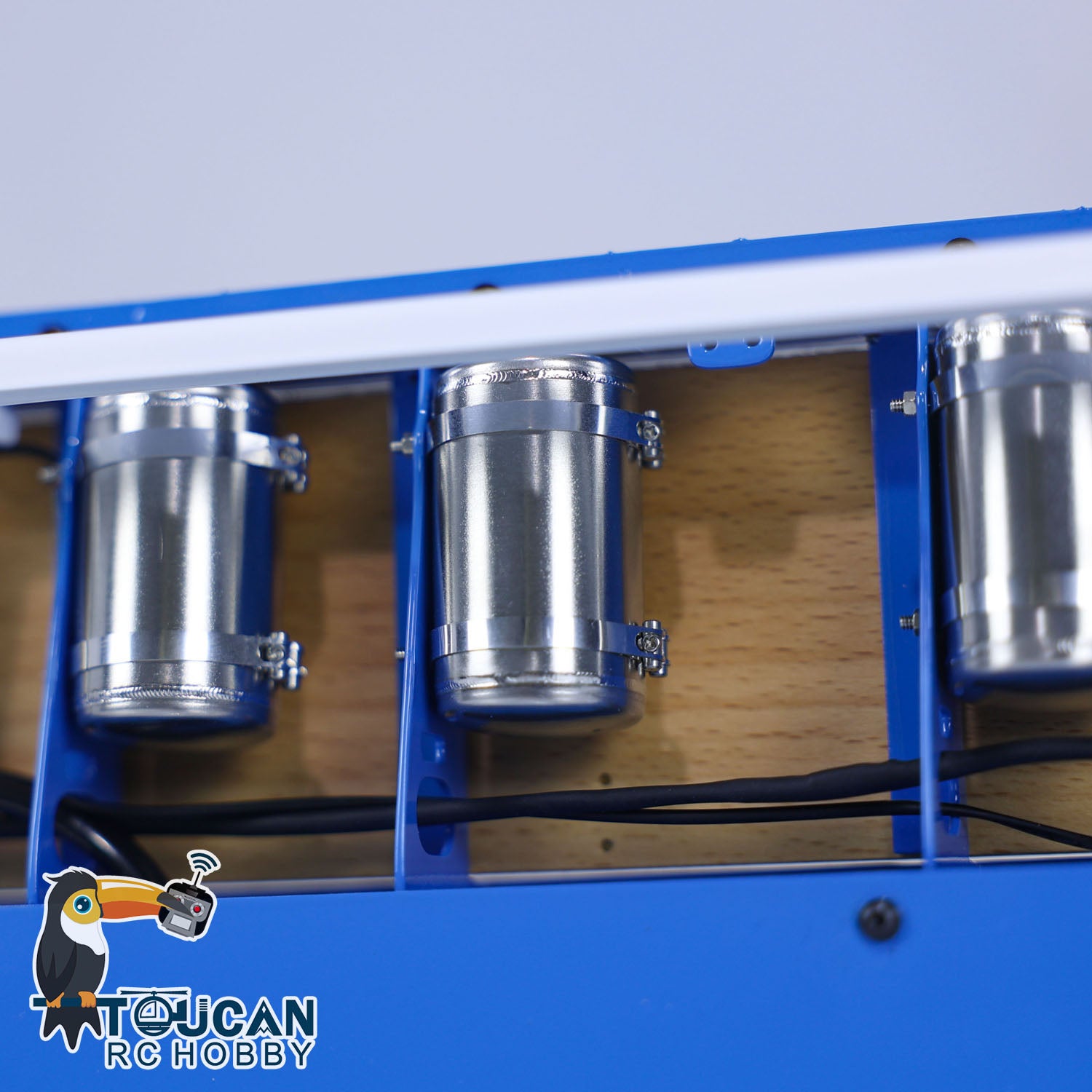 6. Détails et décorations réalistes : des deux côtés de la remorque, il y a des boîtes à outils simulées, des rails latéraux en acier inoxydable et des décorations de cylindres en métal, ajoutant une touche de sophistication et d'attention aux détails.