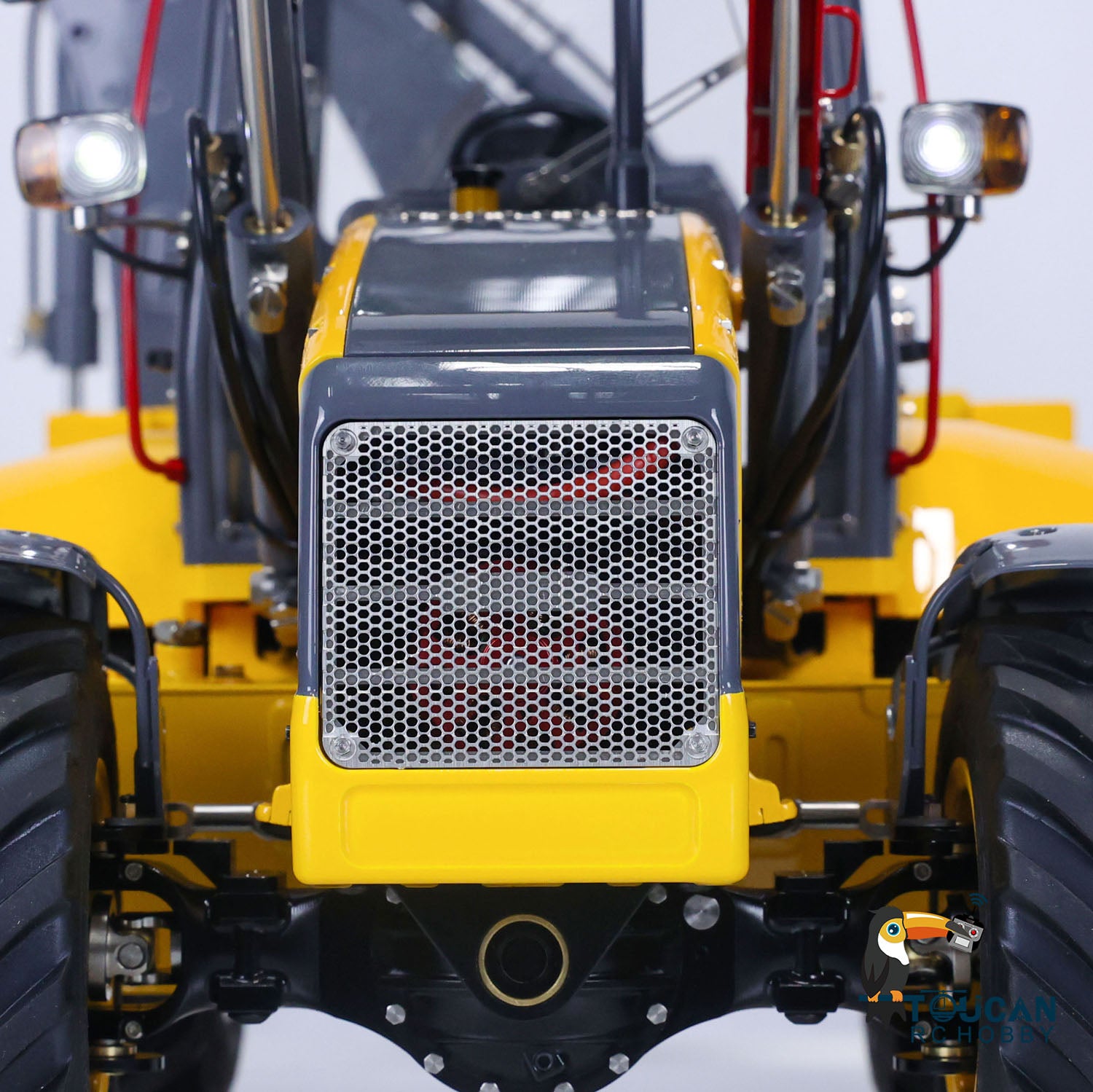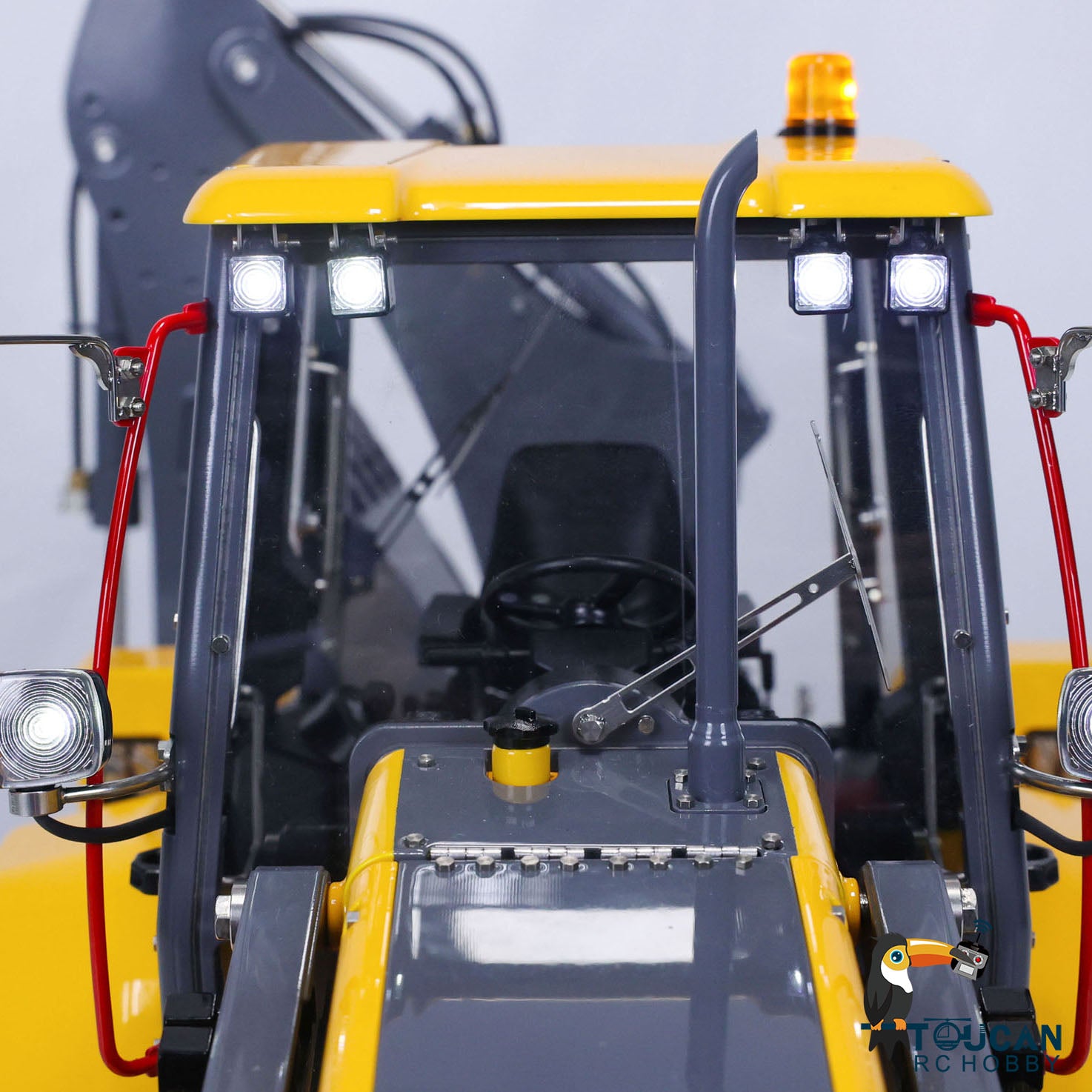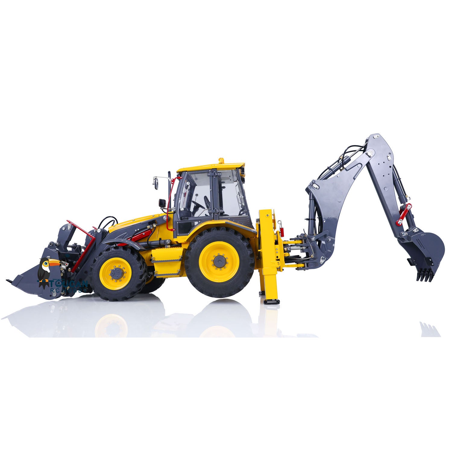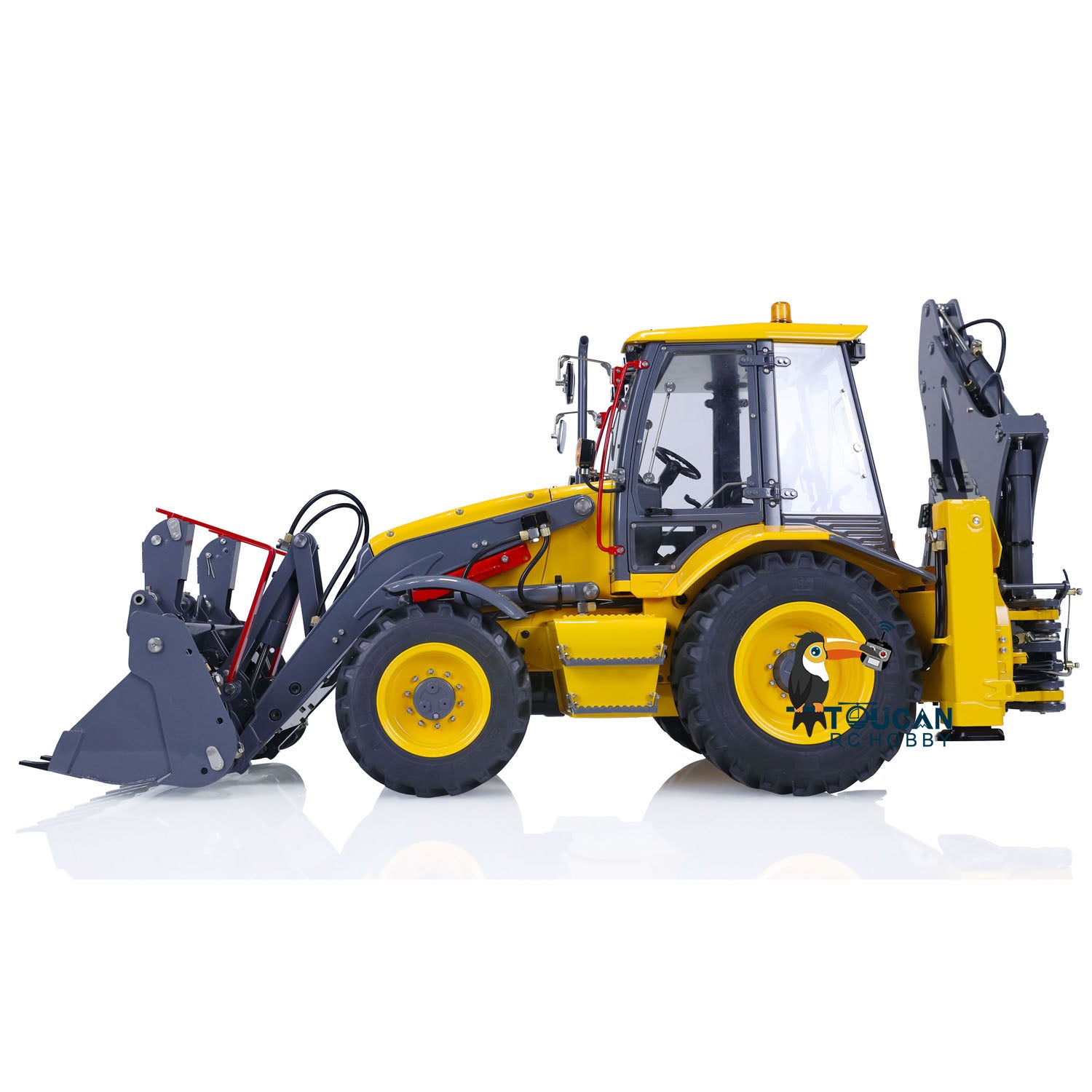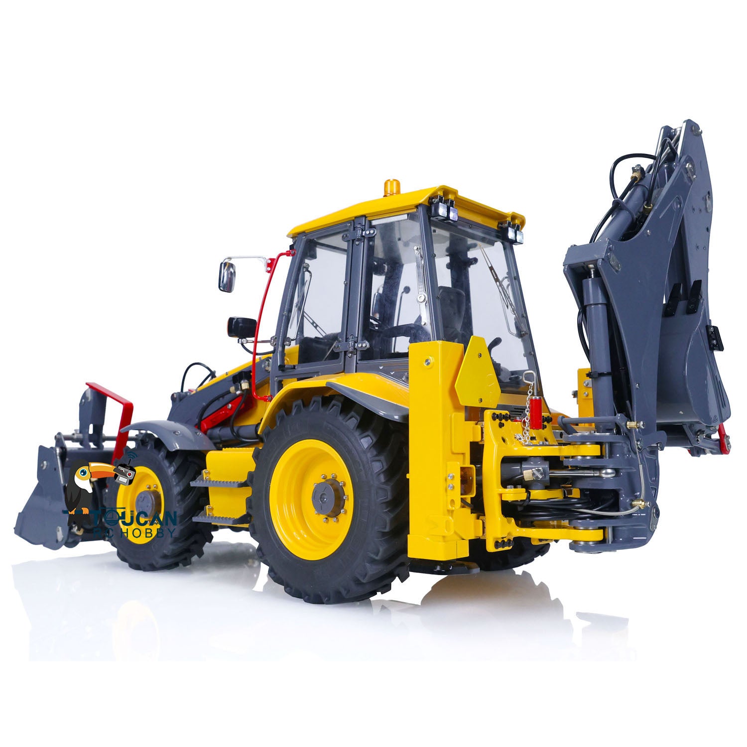 Excavatrice rétrocaveuse hydraulique RC 2 en 1 en métal peinte et assemblée à l'échelle 1/14