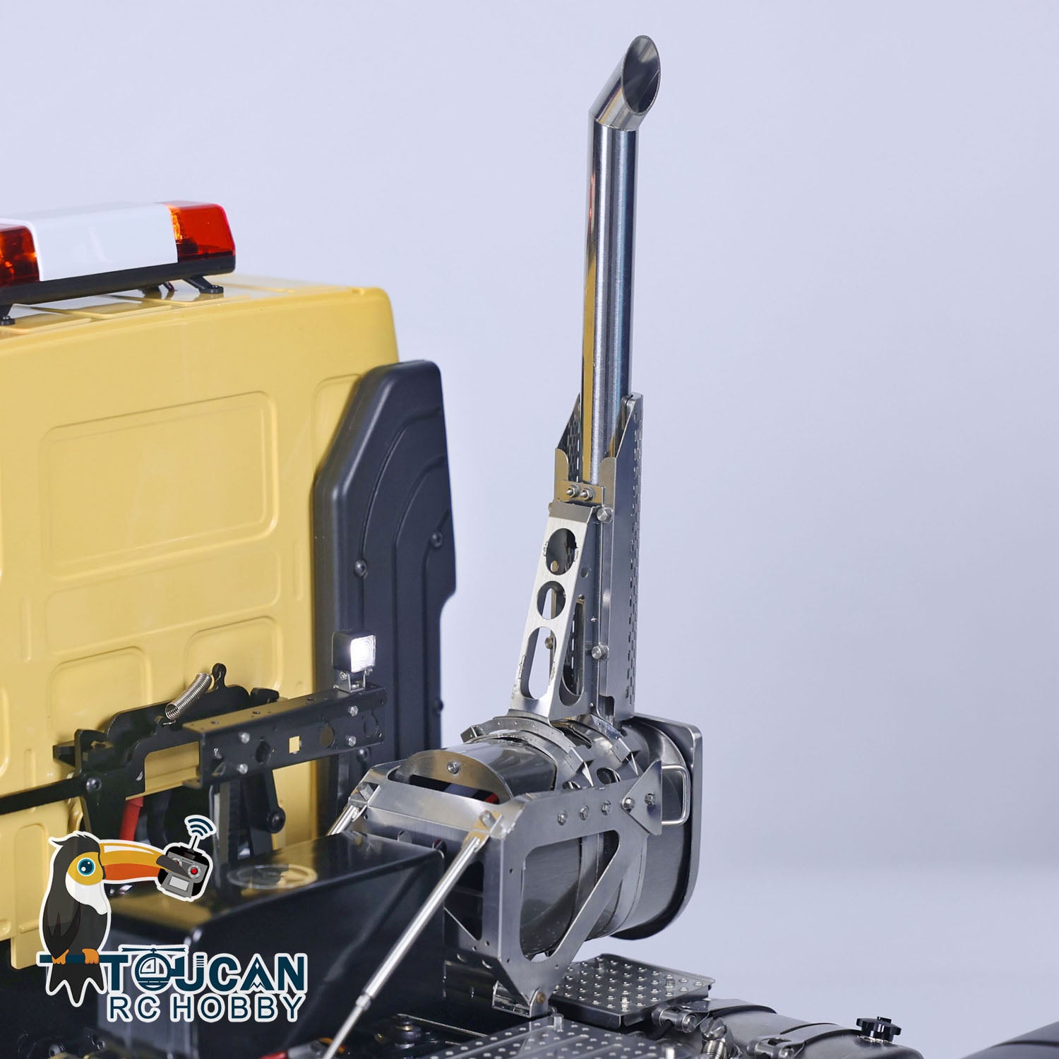 5. Système de générateur de fumée : le modèle est équipé d'un générateur de fumée, qui ajoute une touche de réalisme en produisant de la fumée d'échappement simulée, imitant l'apparence d'un vrai camion en fonctionnement.