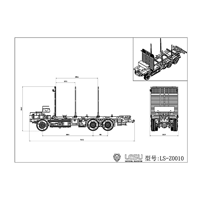 LESU FH16 1/14 Châssis en métal 6*6 RC Dumper Tipper Camion à bois Moteur Lumière