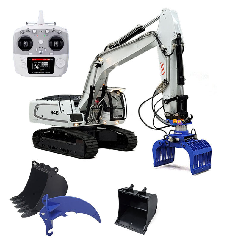 Pelle hydraulique sur chenilles MTM 1/14 946 RC 2 bras en métal ARTR avec godet de démolition