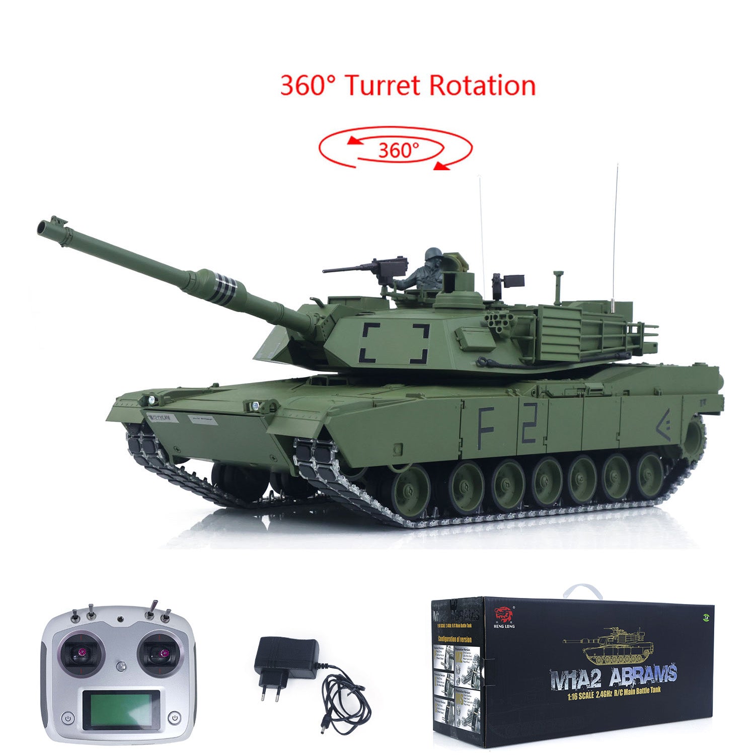 #1/16 TOUCAN Remote Control Battle Tank 3918 Abrams M1A2 Metal Gearbox 360 Rotation Barrel Recoil Elevation Laser Aiming Light