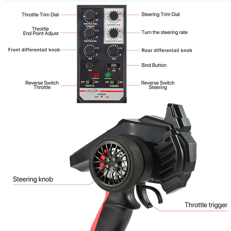 3.Excellent metal hardwares like gears,servos,tie rods,drive shafts,steel bearings and hydraulic shock absorbers make the truck sturdy and durable