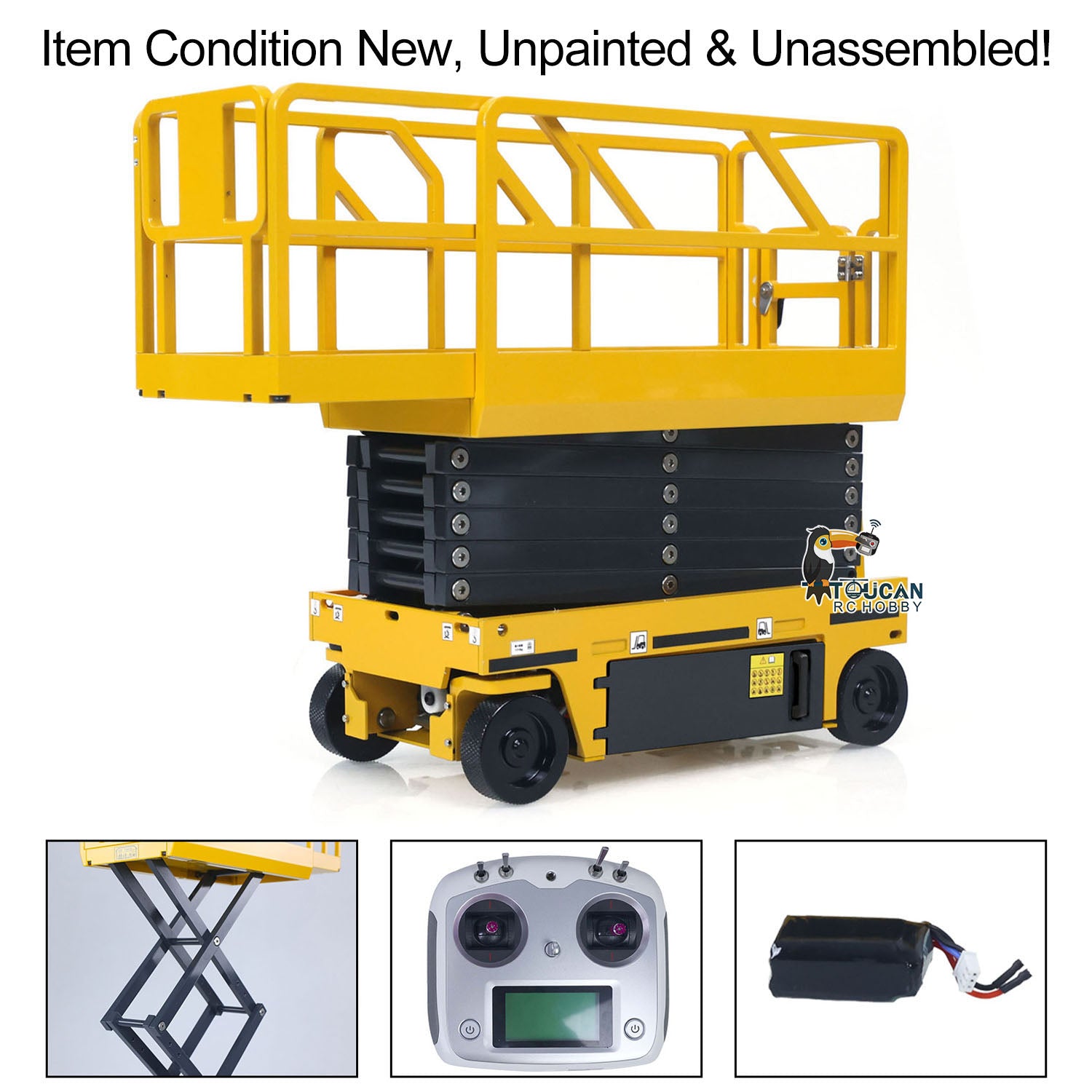 #CUT 1/14 Metal RC Hydraulic Scissor Lift Platform Kit Self-propelled Aerial Work Truck Industrial Model No Lights Sounds