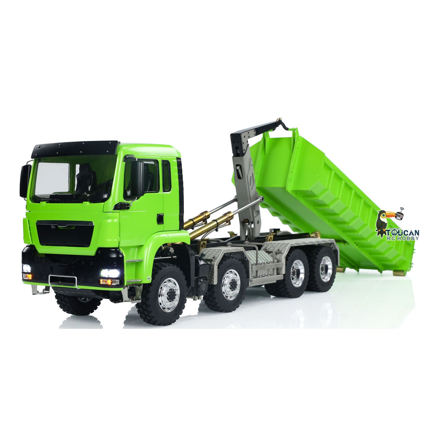 LESU TGS 1/14 RC Hydraulic Roll On Off Dump Truck 8x8 Metal Chassis Dumper Differential Lock EDS Axles 2Speed Gearbox Model Car