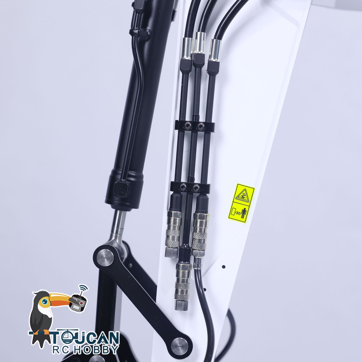 4. Includes a quick-release coupler and quick connectors for easy setup and customization of the excavator model.