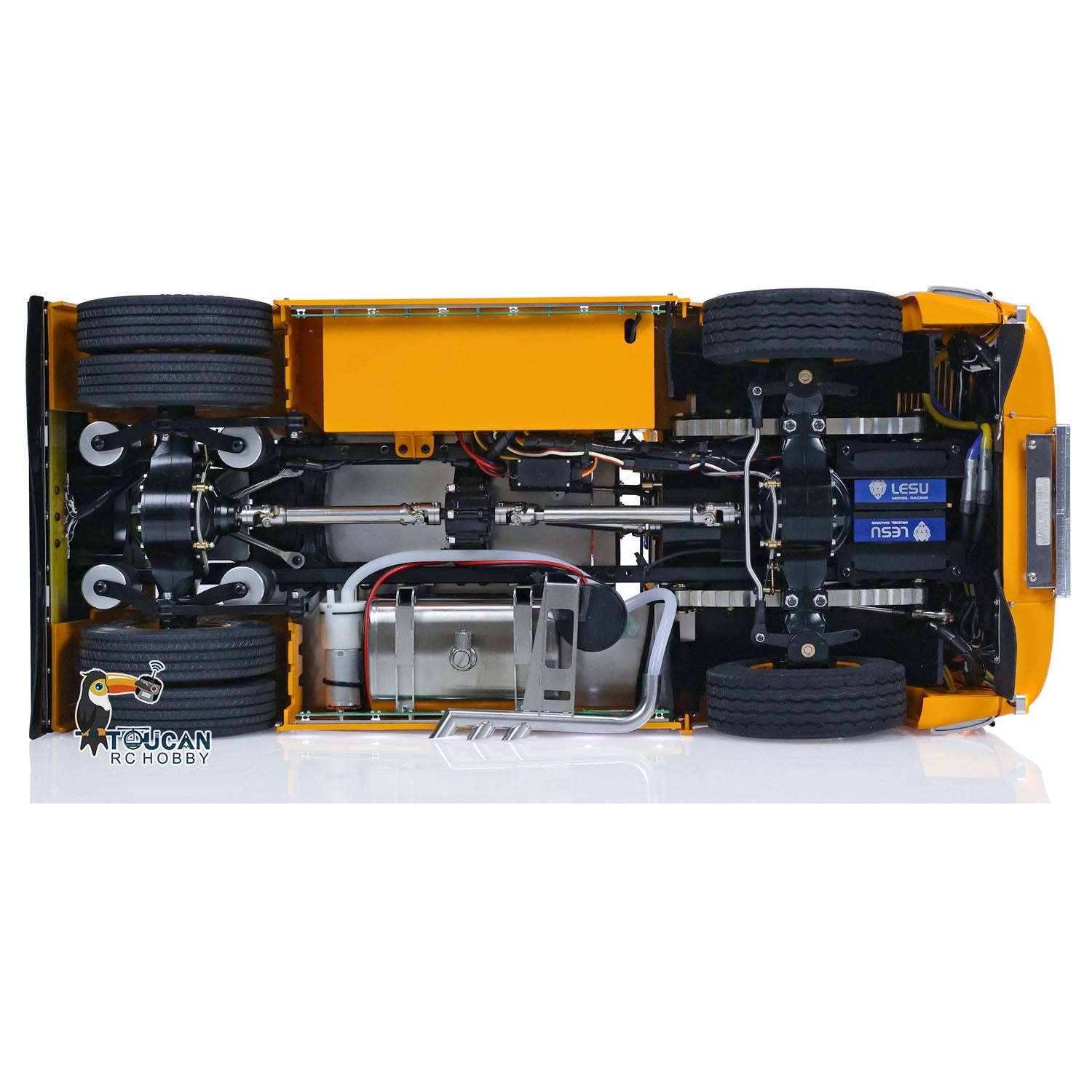 1. Metal Chassis, Axles, Drive Shafts, and Hubs: The RC tractor truck model features a robust TOUCAN metal chassis that enhances durability and realism. All essential components like the axles, drive shafts, and wheel hubs are constructed using high-quality metal for added strength.