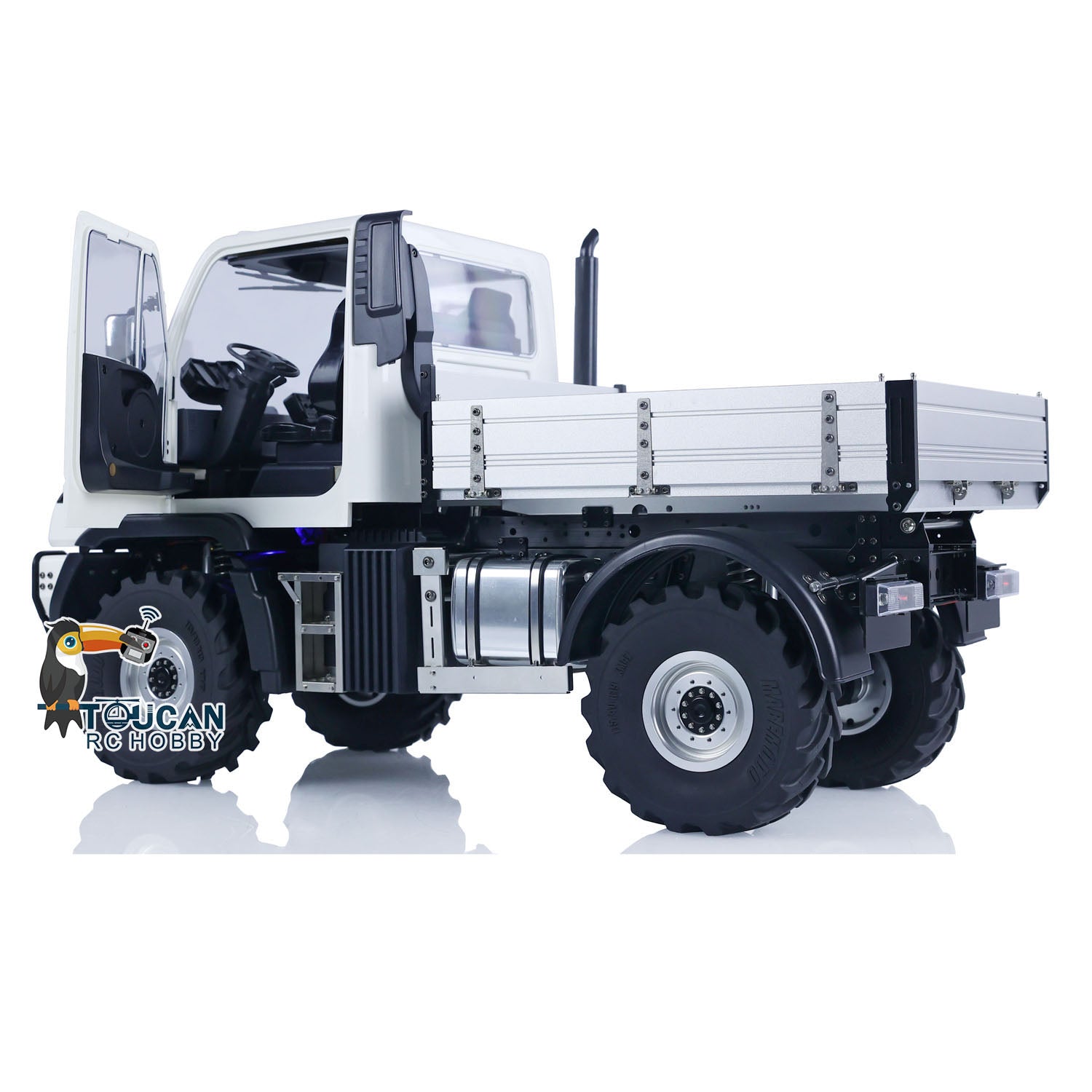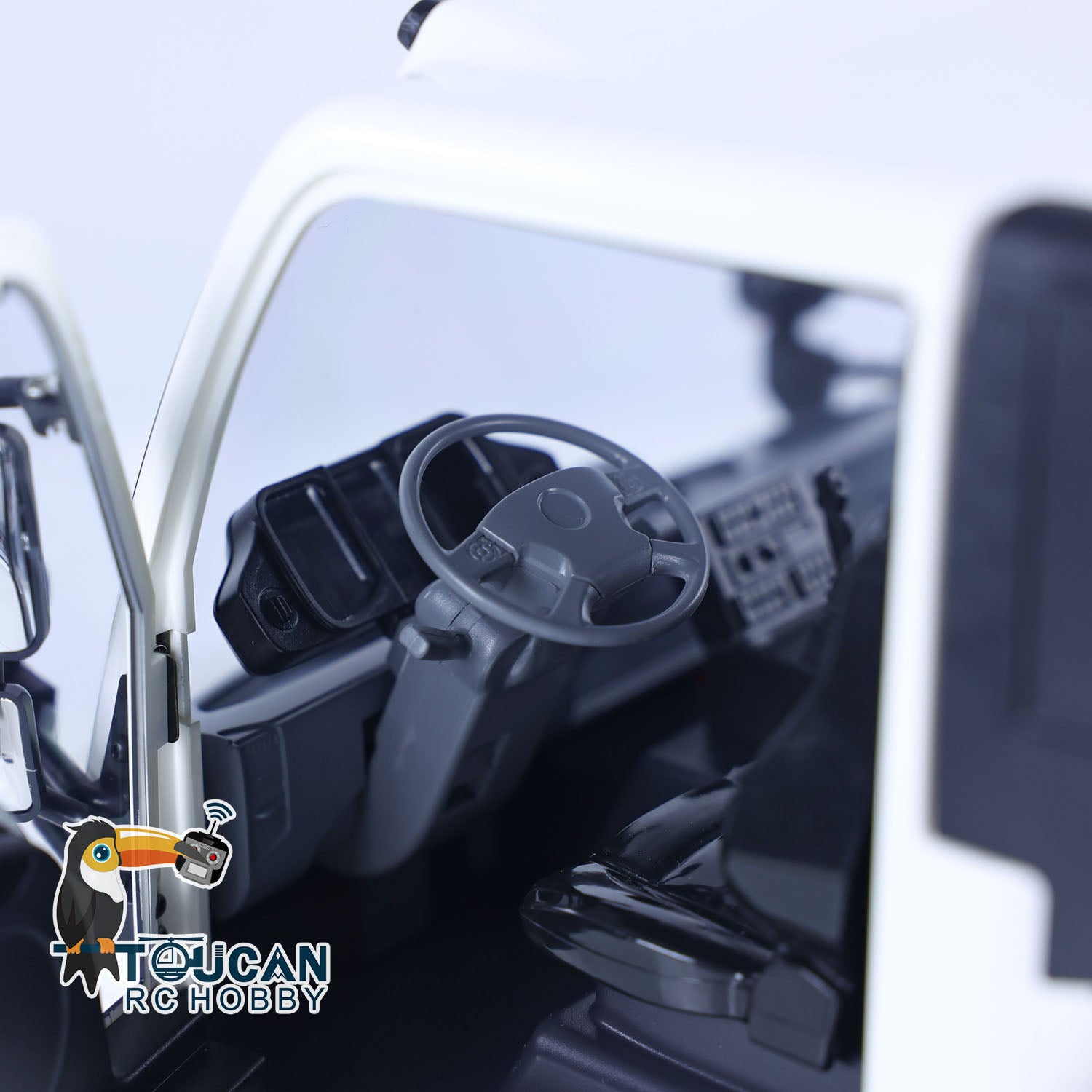 4. The model includes realistic details such as simulated rearview mirrors, chimney, snorkel, windshield wipers, door handles, and interior cabin decorations, faithfully replicating the fine details of a real vehicle.