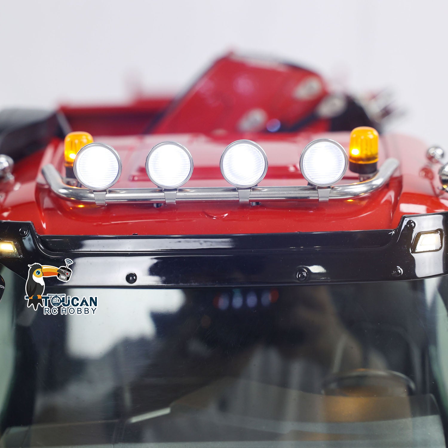 14. Headlights, roof illumination lights, and side lights are controlled together with the central differential through the same channel. The three rotating lights illuminate when powered, and they cannot be controlled remotely.
