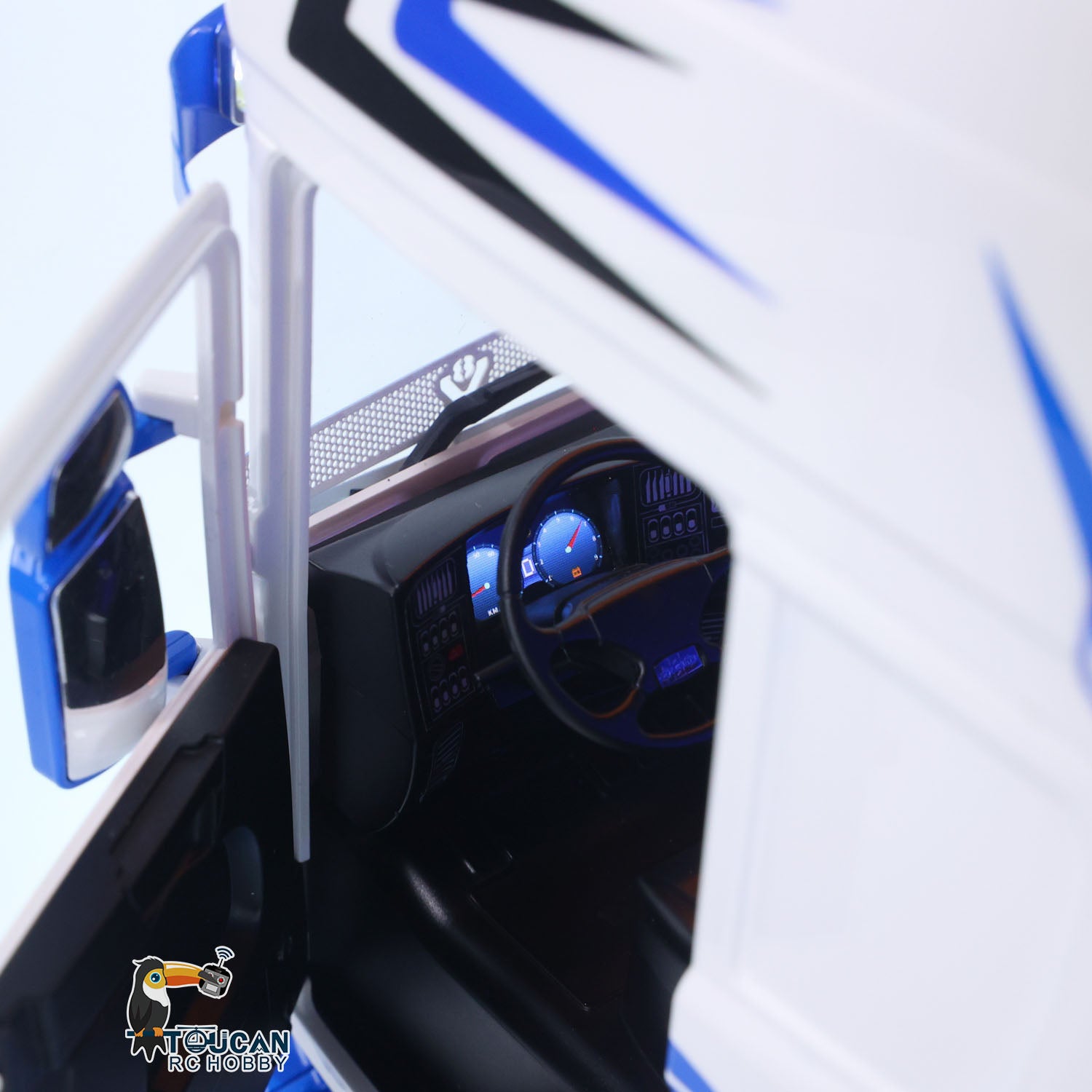 An LCD display is integrated into the cab, linked to the throttle and steering. As the throttle joystick is adjusted, the RPM and speed pointers move in real-time, making the truck more realistic.